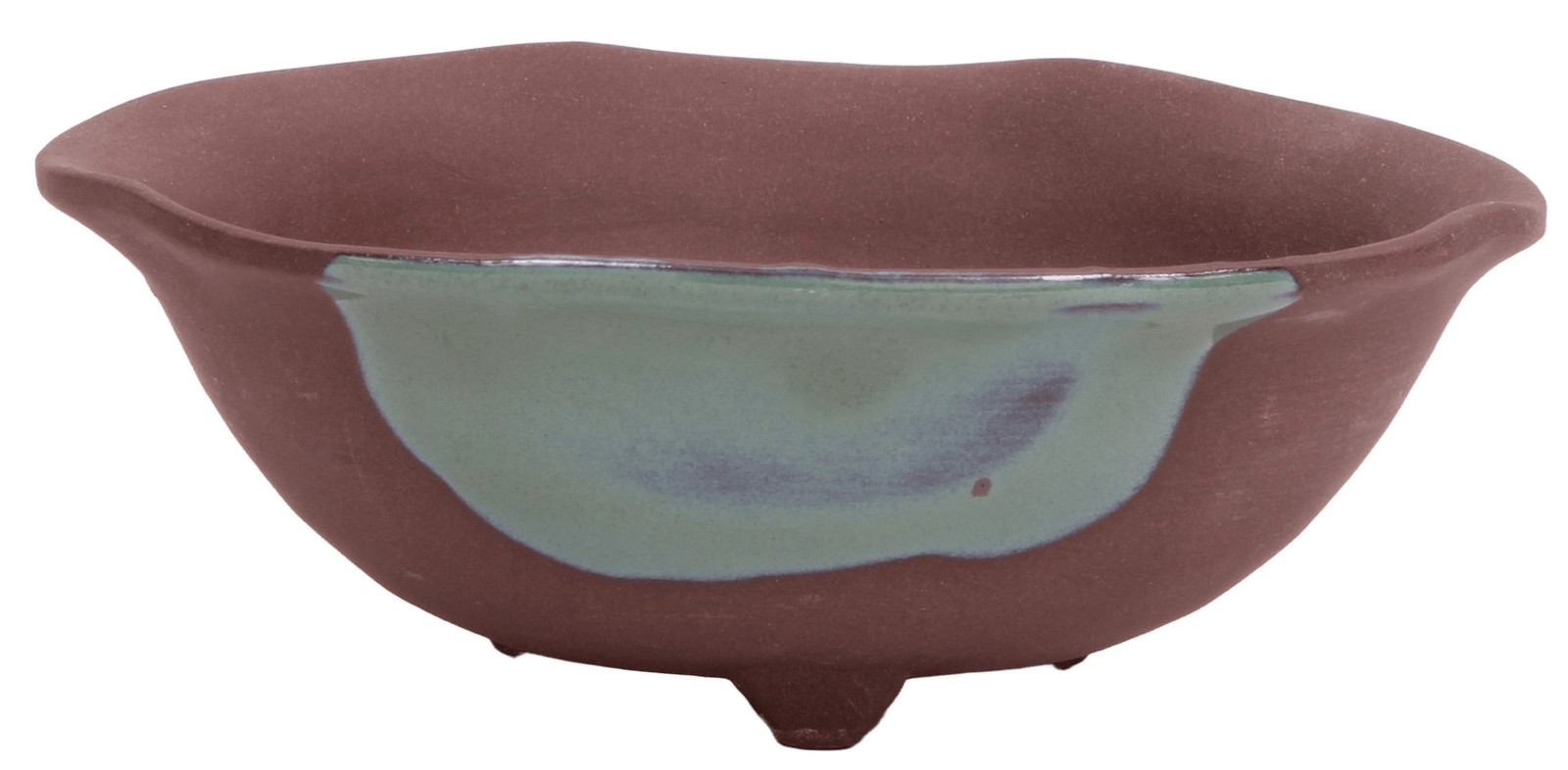 Runde Bonsaischale / Kusamonoschale teilglasiert aus Japan
