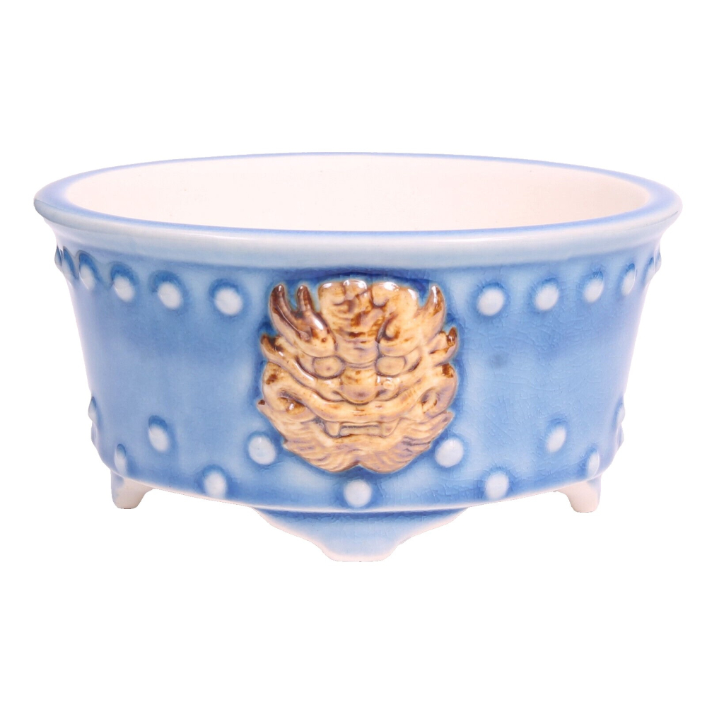 Bonsai - Schale, rund 13 Ø x 6,5 cm, Blau mit Löwenkopf 15867
