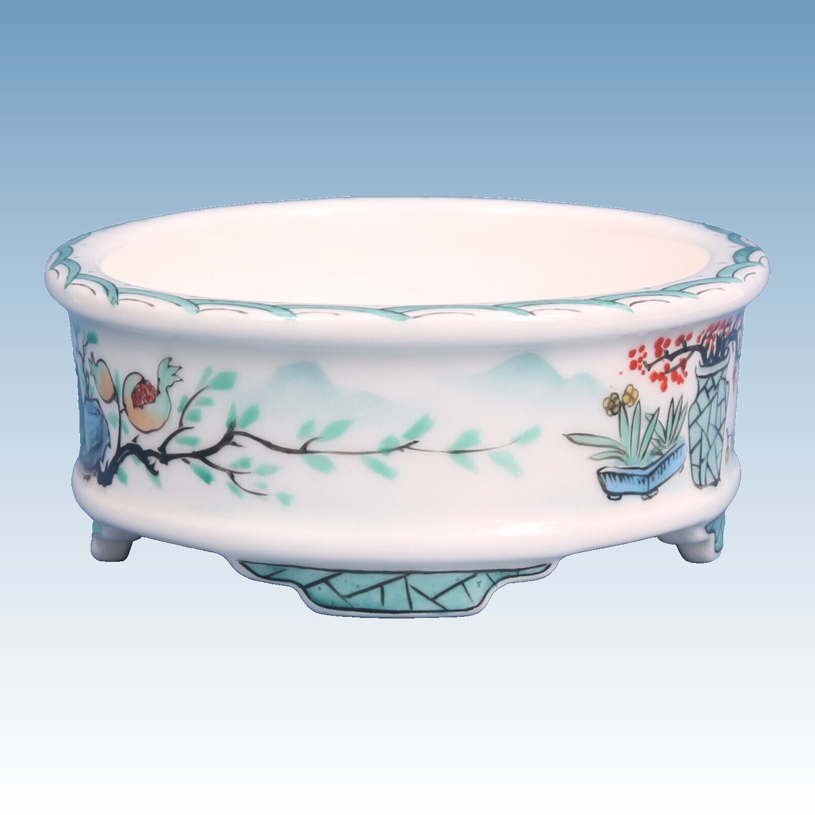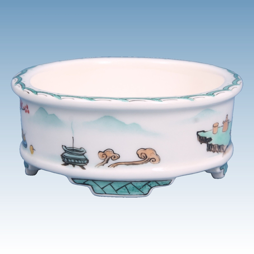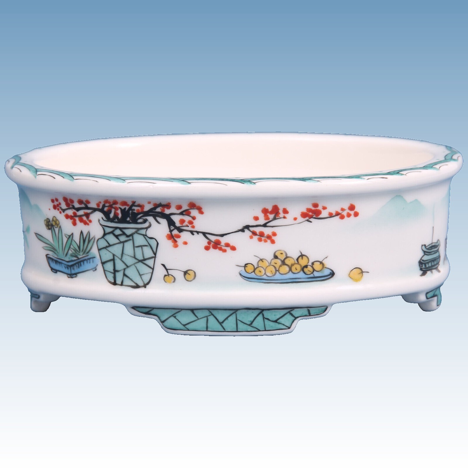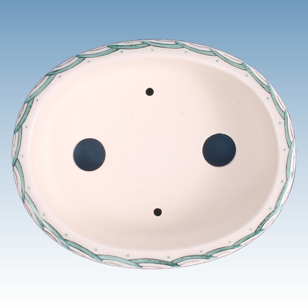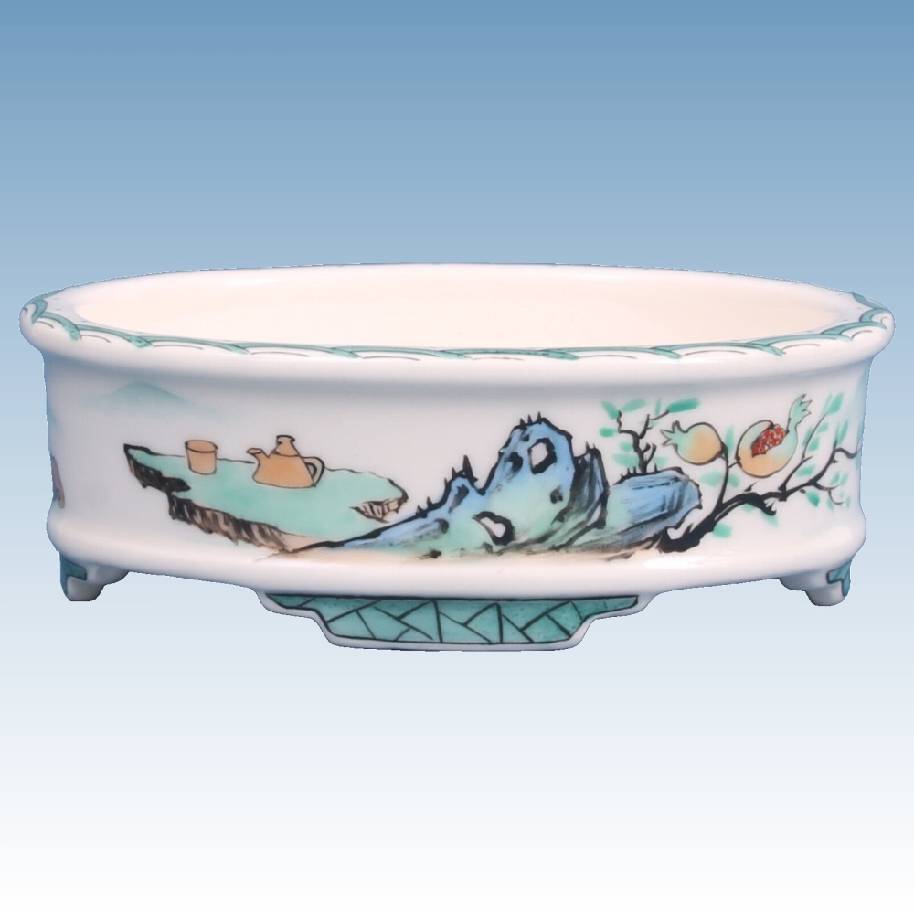 Bonsai - Schale, Shohinschale oval 13,3 x 10,5 x 4,5 cm, handbemalt 15872