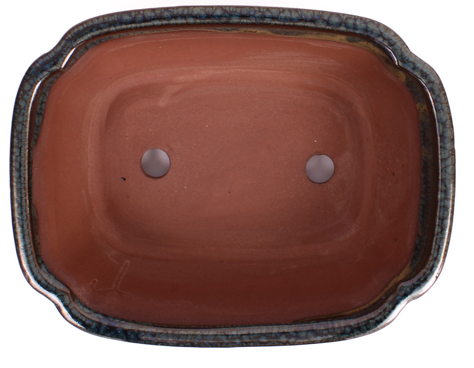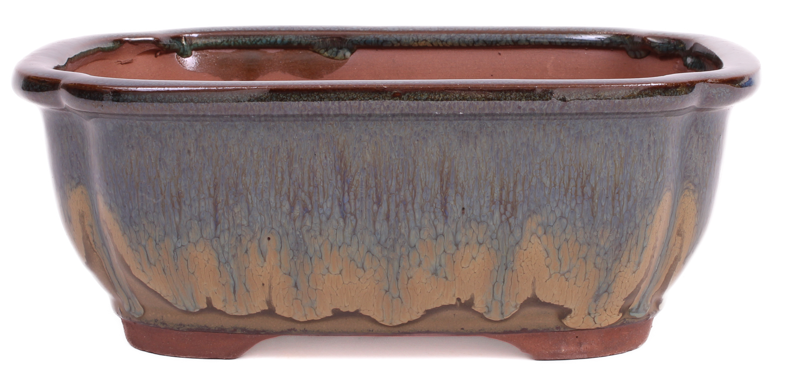 Eckige Bonsaischale - grünblau / beige verlaufend glasiert Außenmaße ca. 21.5 x 17 x 8.5 cm