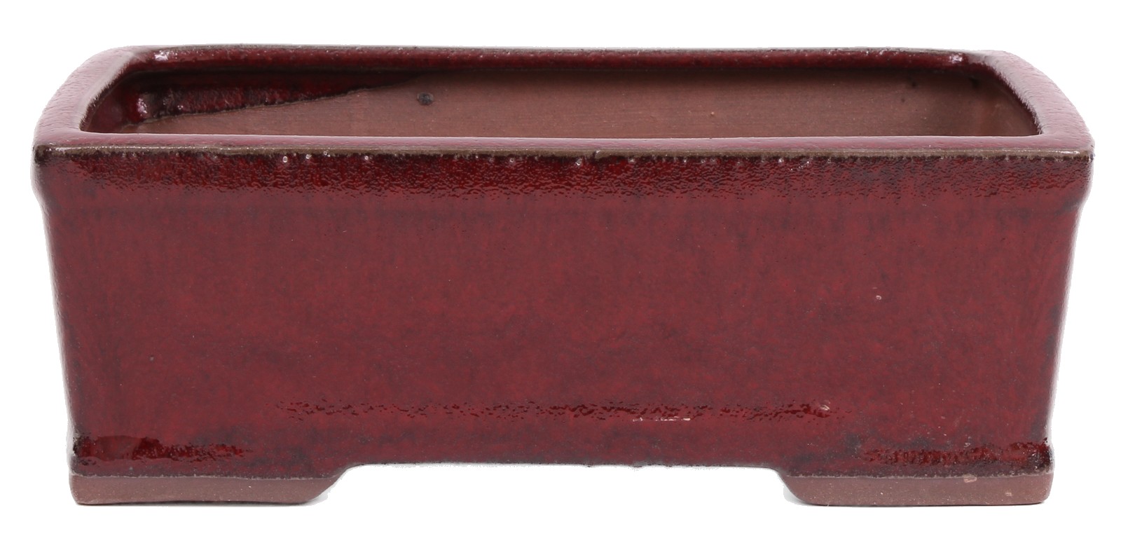 Eckige Bonsaischale bordeauxfarben glasiert
