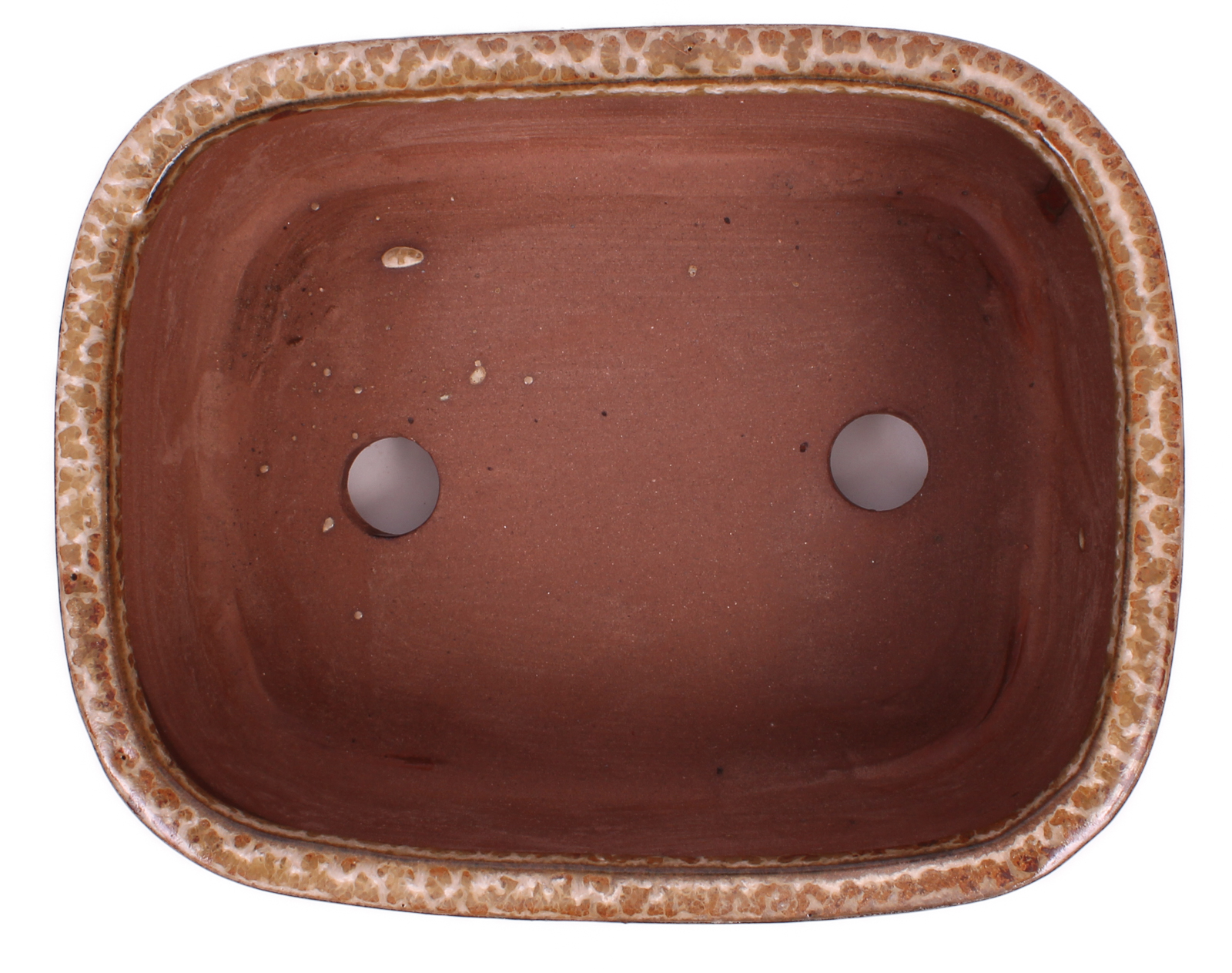 Eckige Bonsaischale - kupferfarben / beige verlaufend glasiert Außenmaße ca. 16.5 x 13 x 6.8 cm