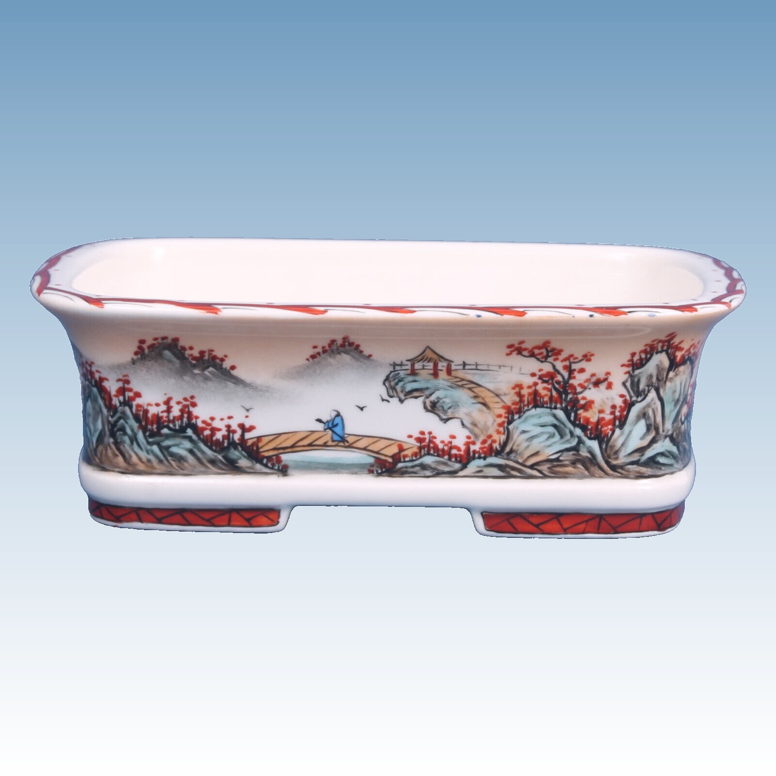 Bonsai - Schale, eckig 18 x 14 x 6 cm, handbemalt 22704