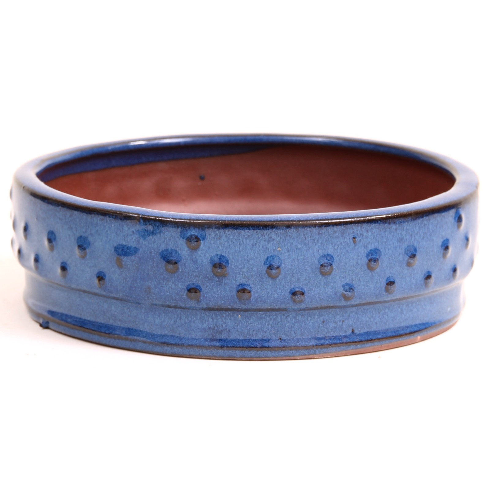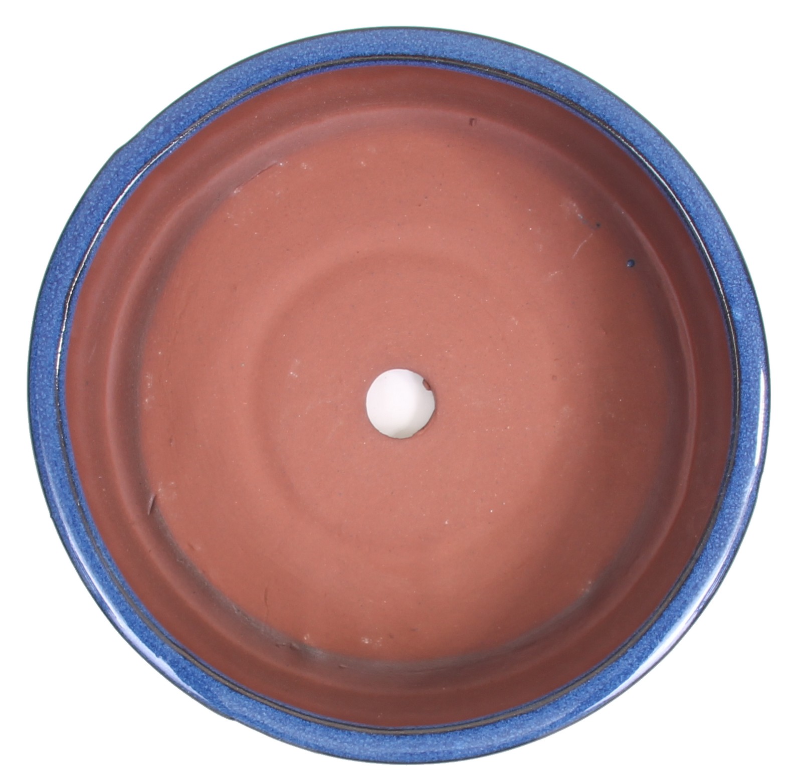 Runde Bonsai-Schale, Trommelschale, 19 Ø x 5,5 cm, blau glasiert