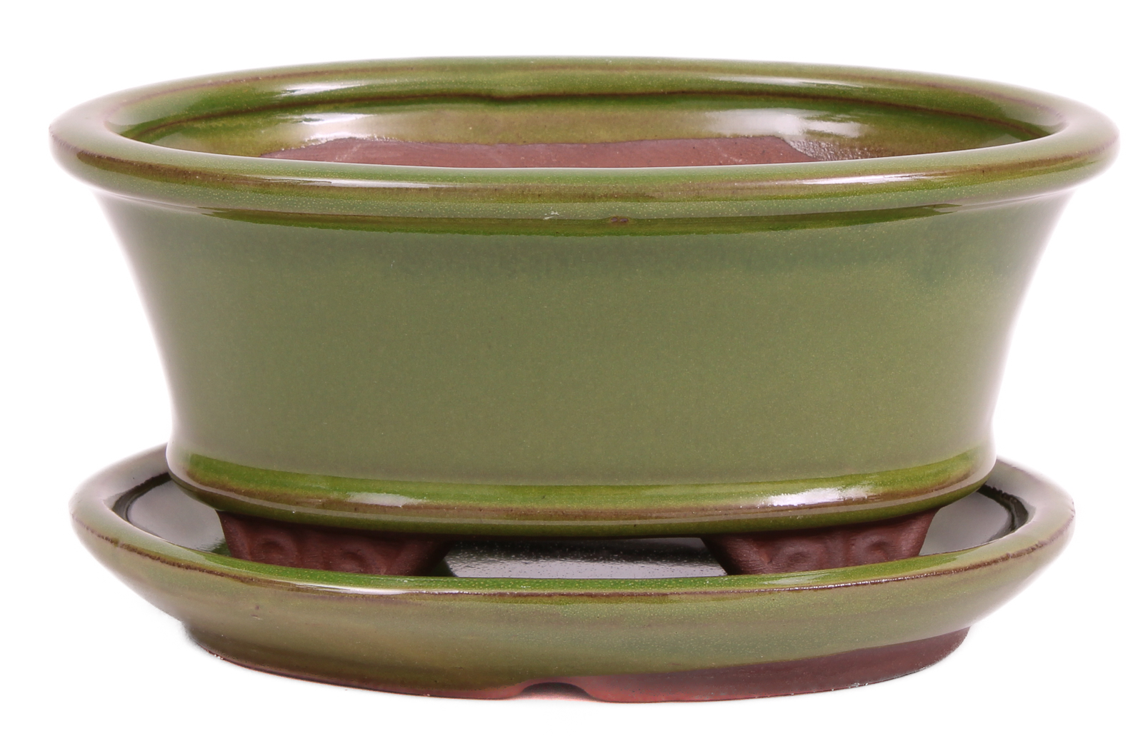 Ovale Bonsaischale - grün glasiert - mit Untersetzer