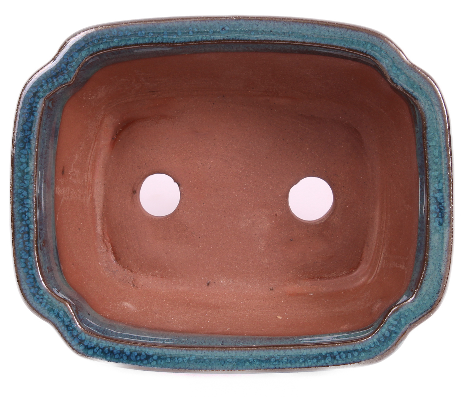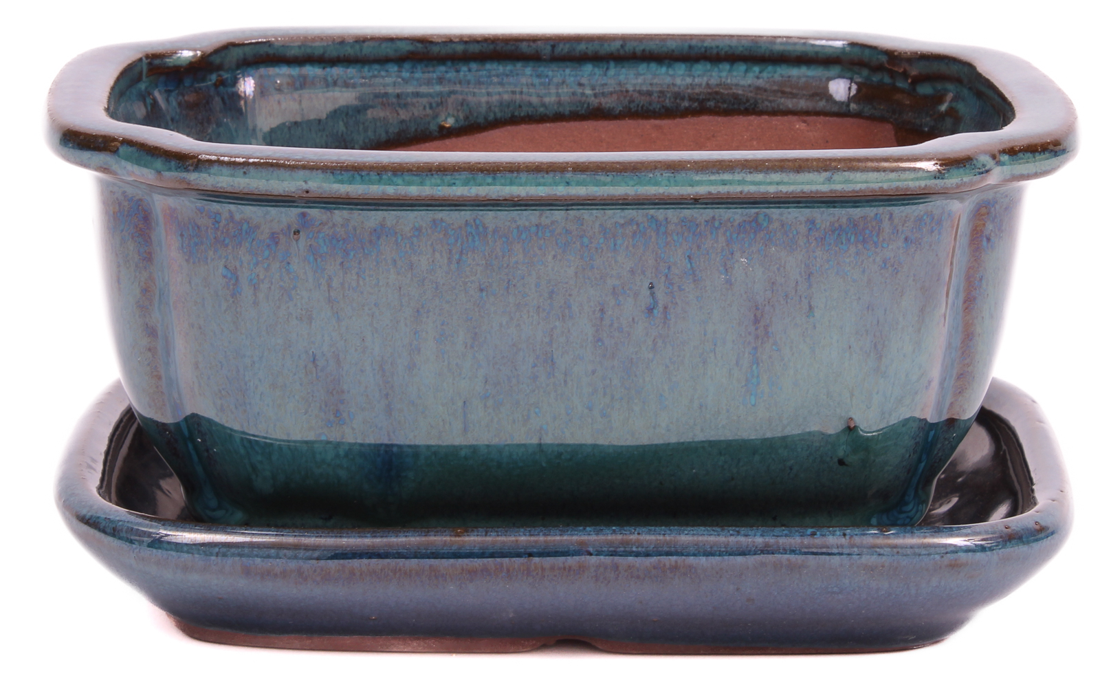 Eckige Bonsaischale - grün-blau glasiert - mit Untersetzer