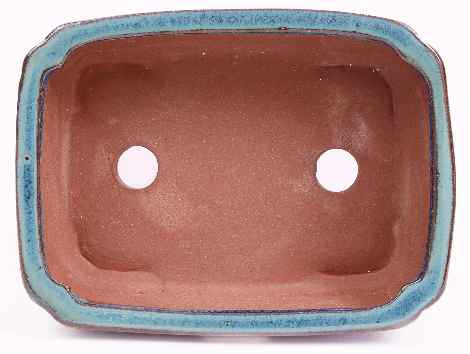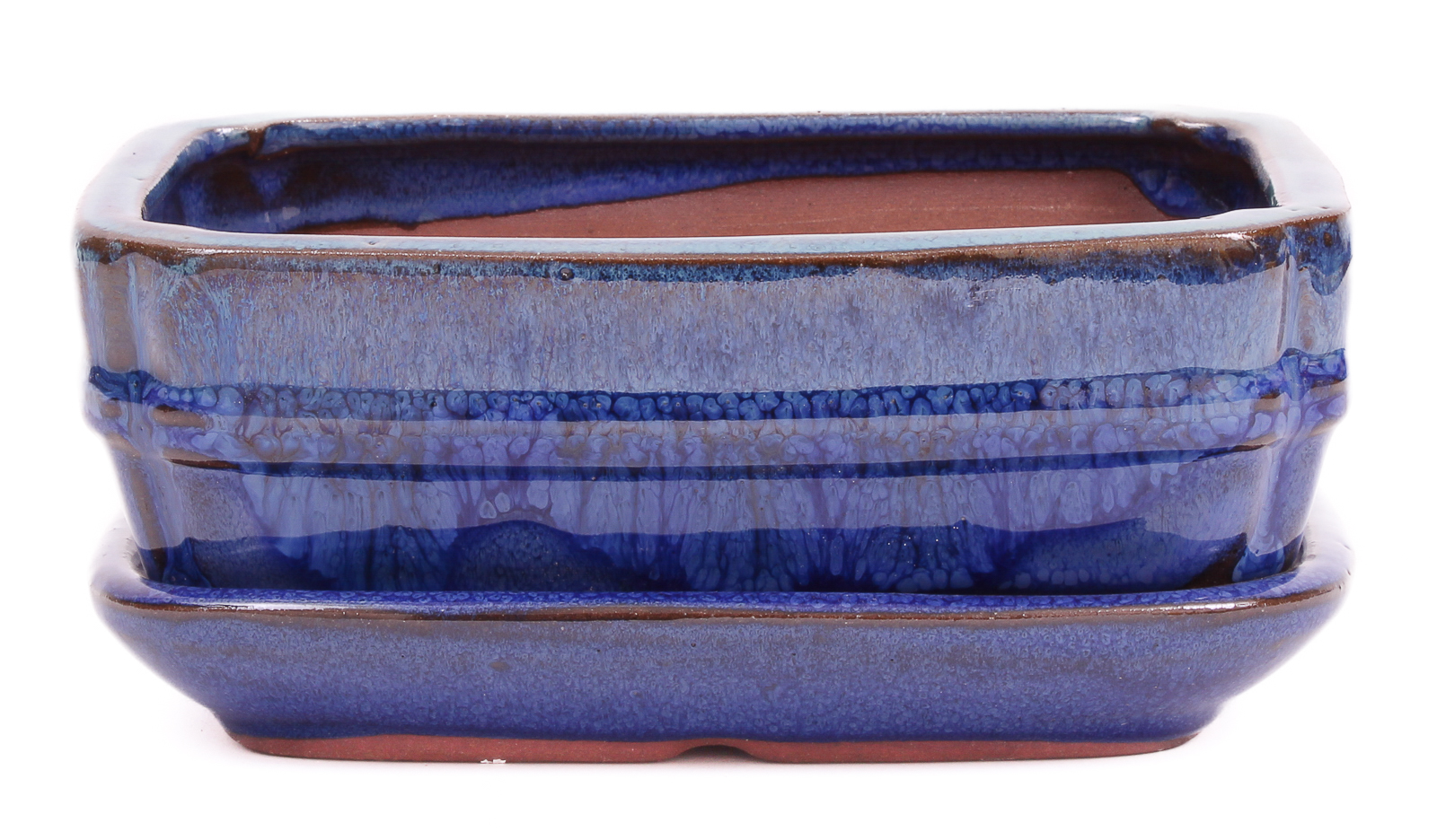 Eckige Bonsaischale - blau / grün verlaufend glasiert - mit Untersetzer