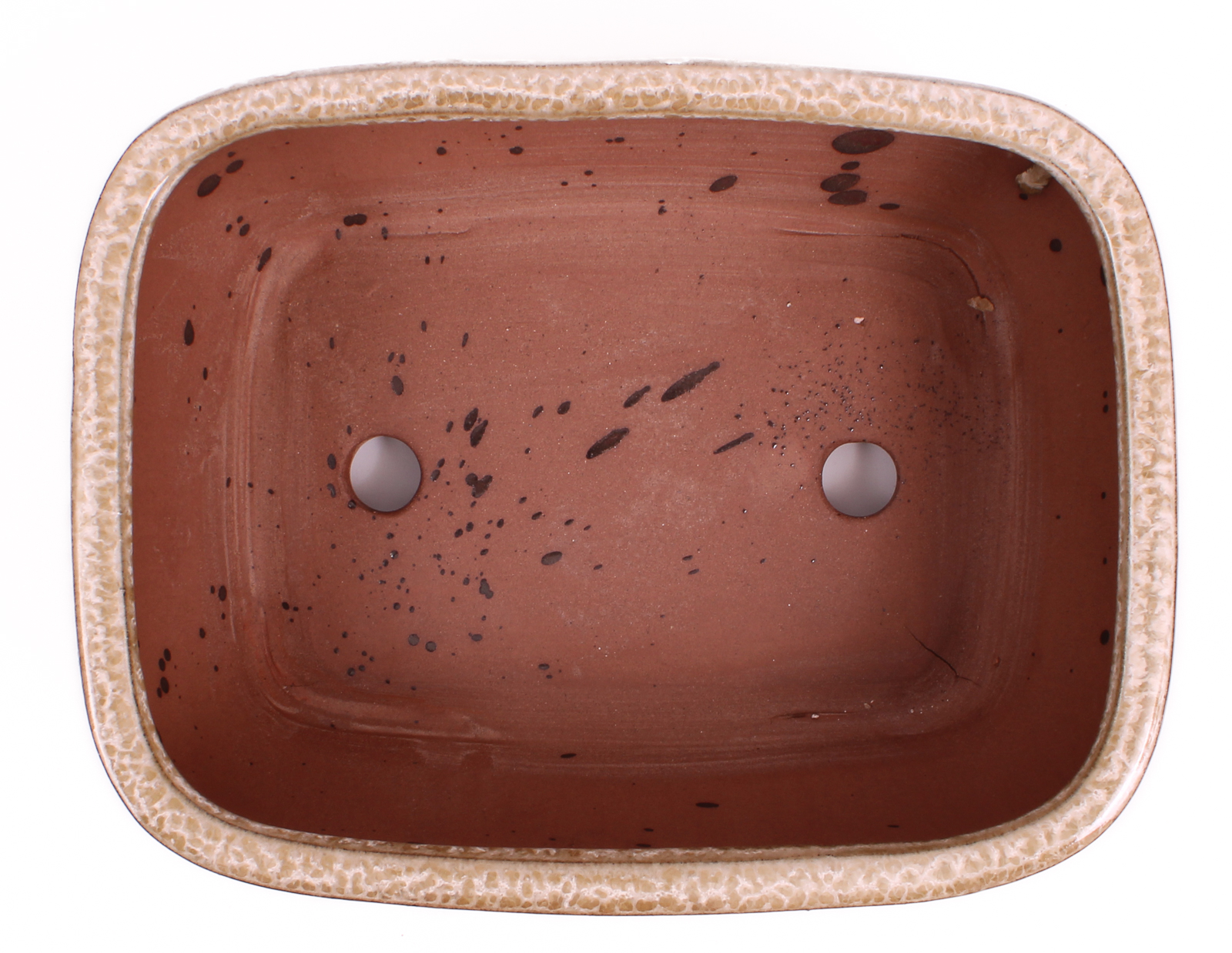 Eckige Bonsaischale - kupferfarben / beige verlaufend glasiert - mit Untersetzer