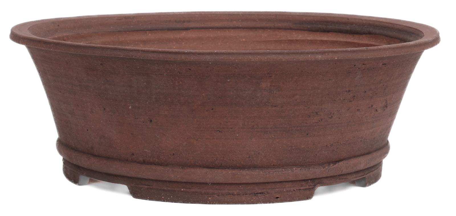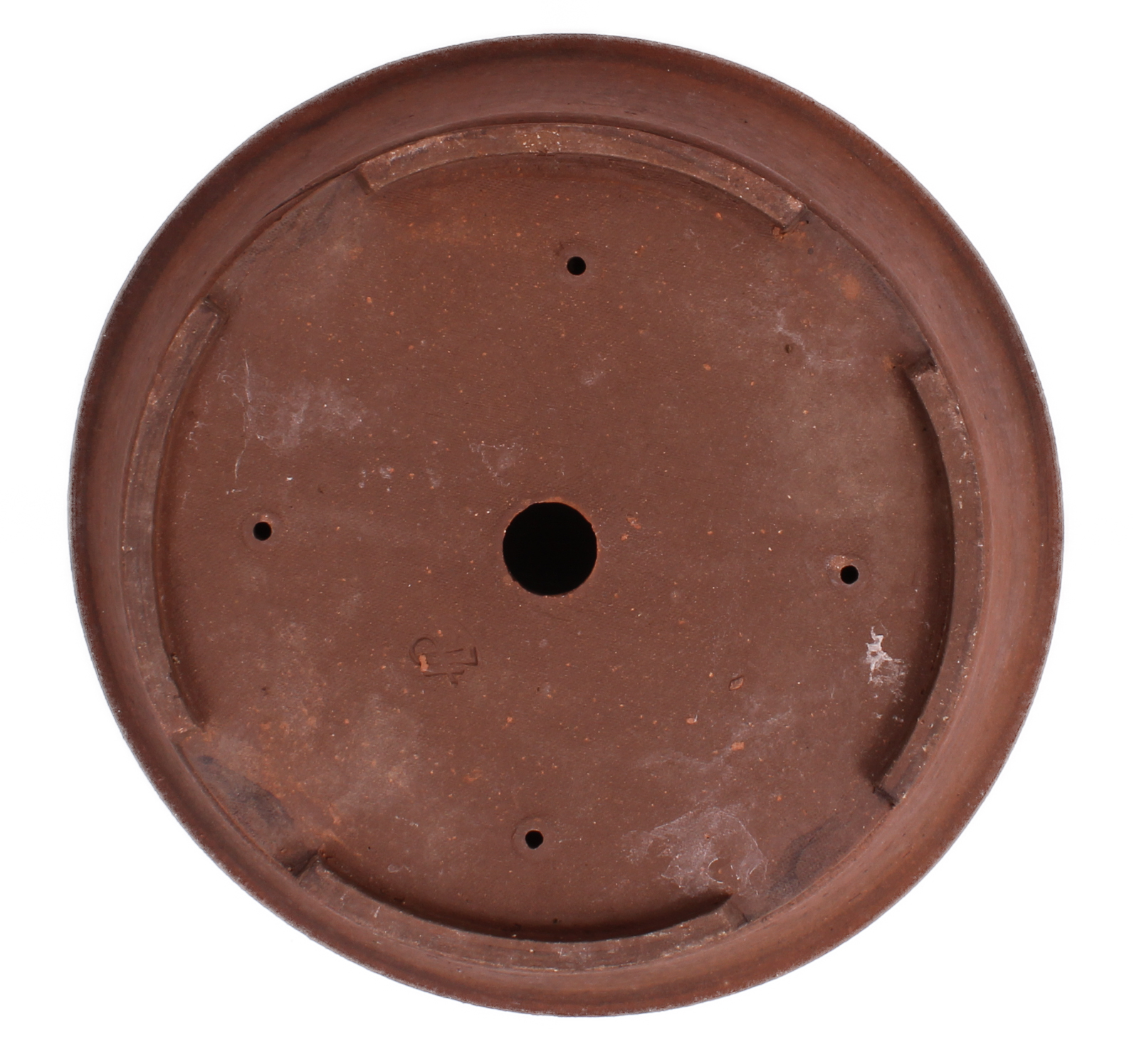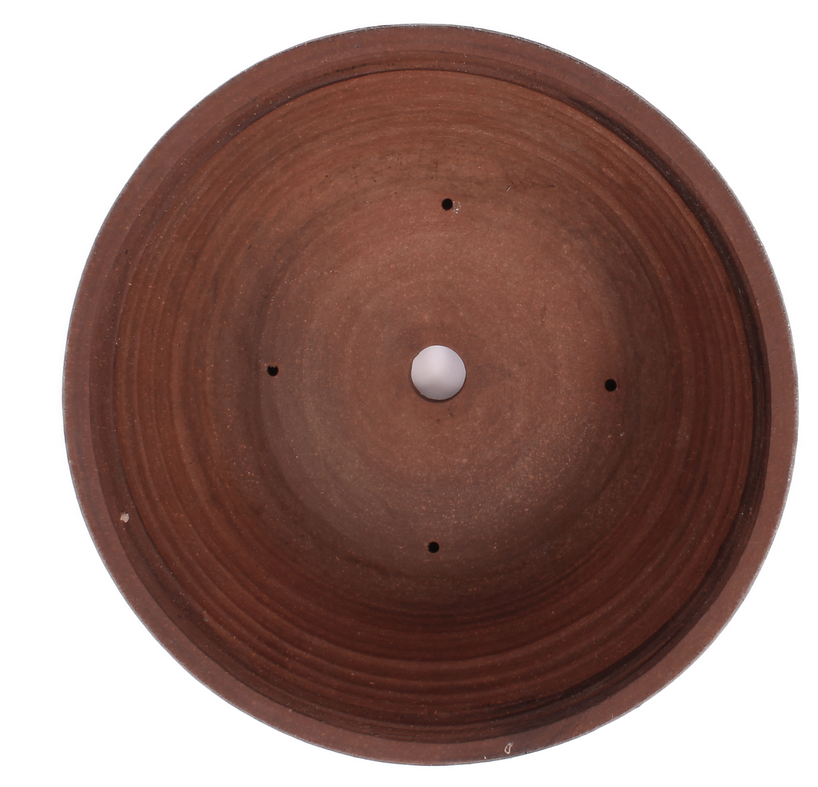 Runde handgemachte Bonsaischale von Jürgen Hilken unglasiert braun