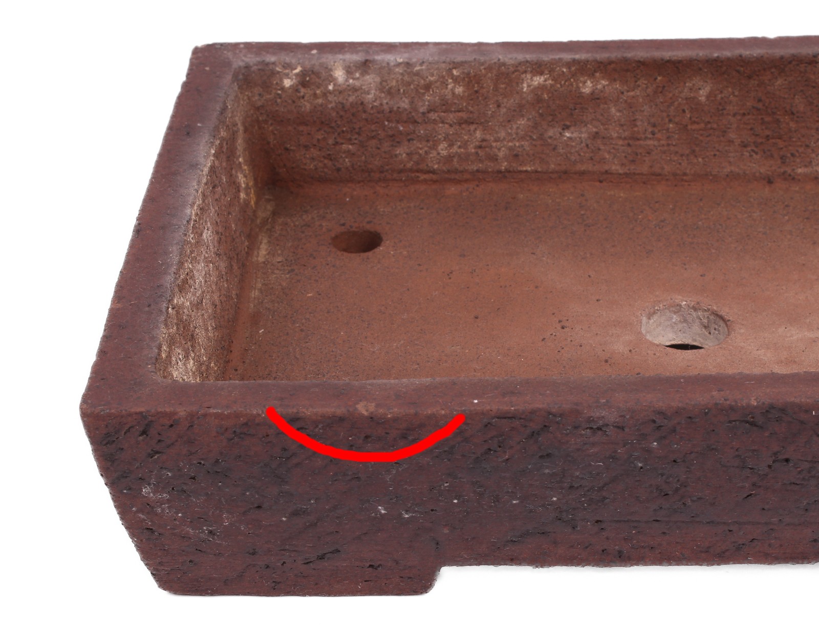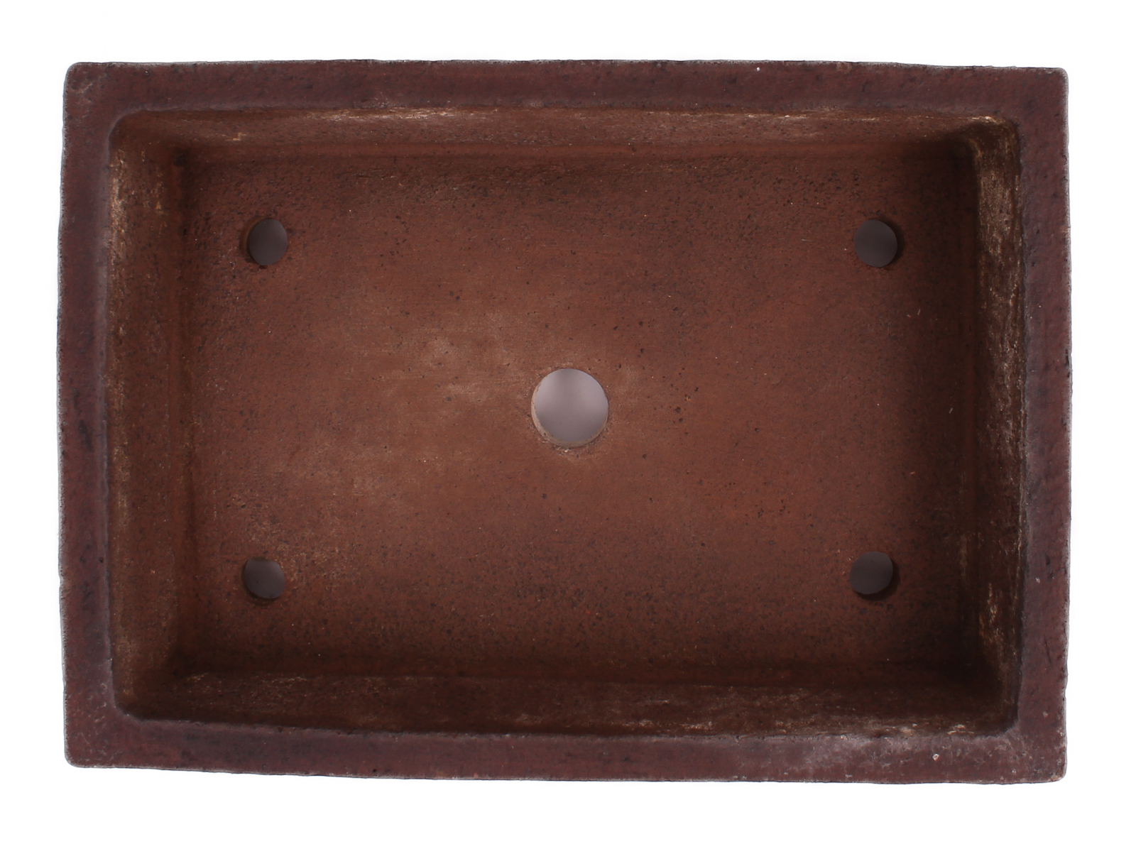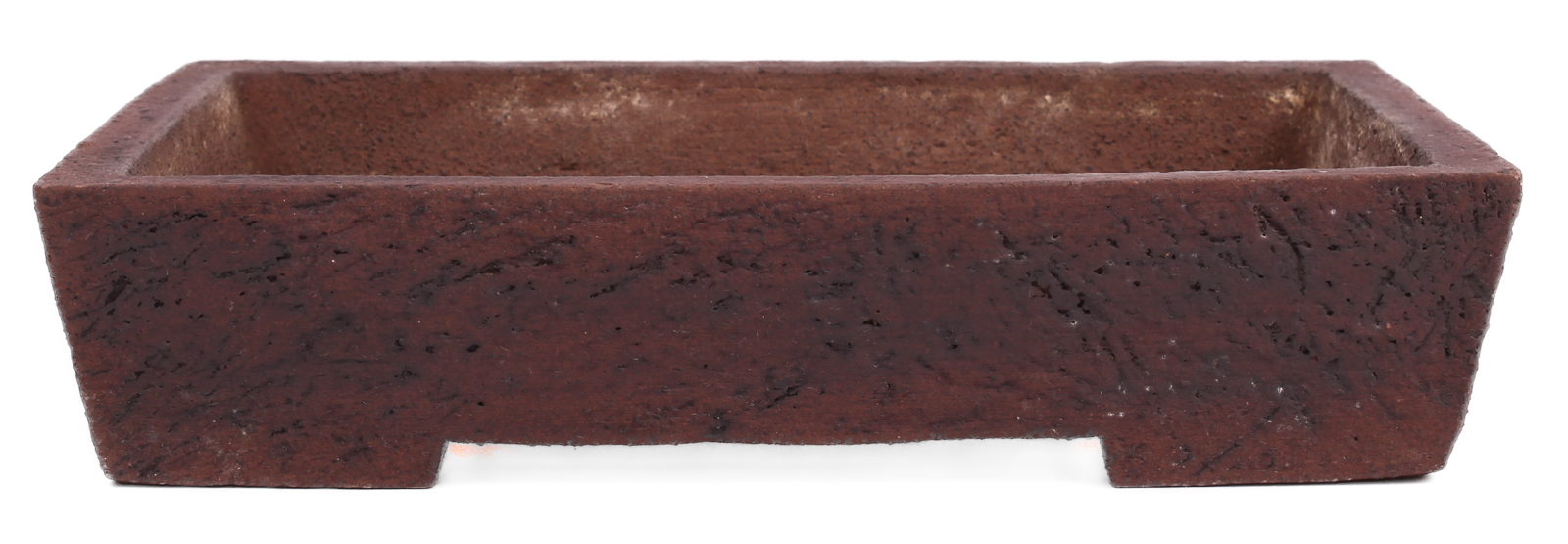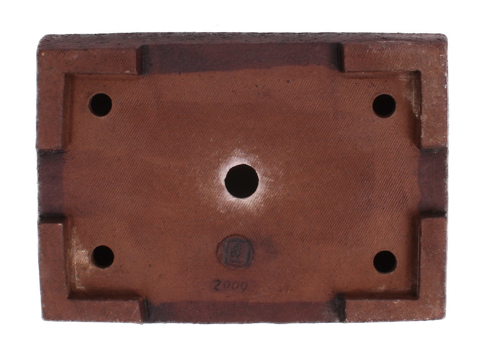 Eckige handgemachte Bonsaischale von Axel Brockmann unglasiert braun