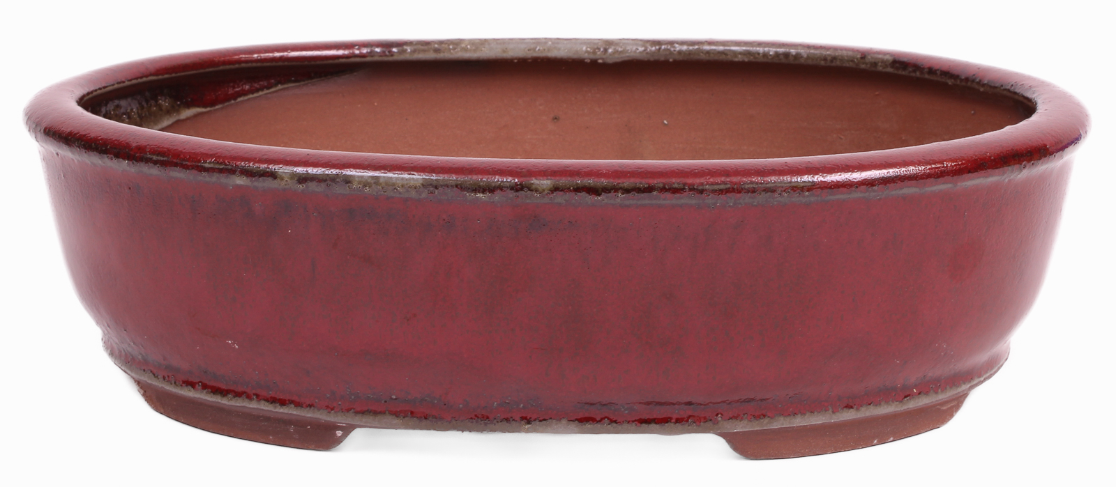 Ovale Bonsai-Schale bordeauxfarben glasiert