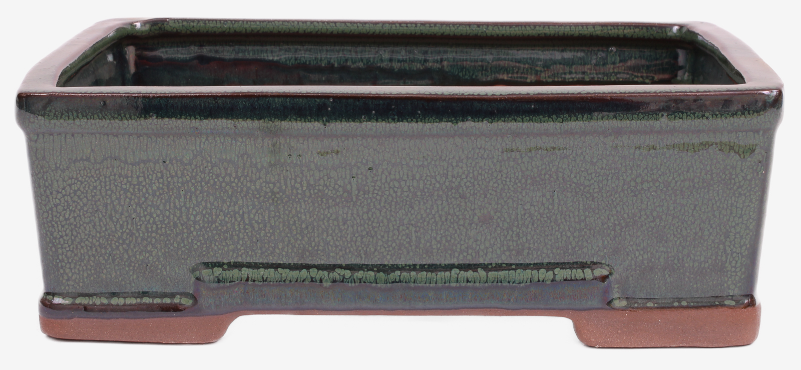 Eckige Bonsaischale moosgrün glasiert