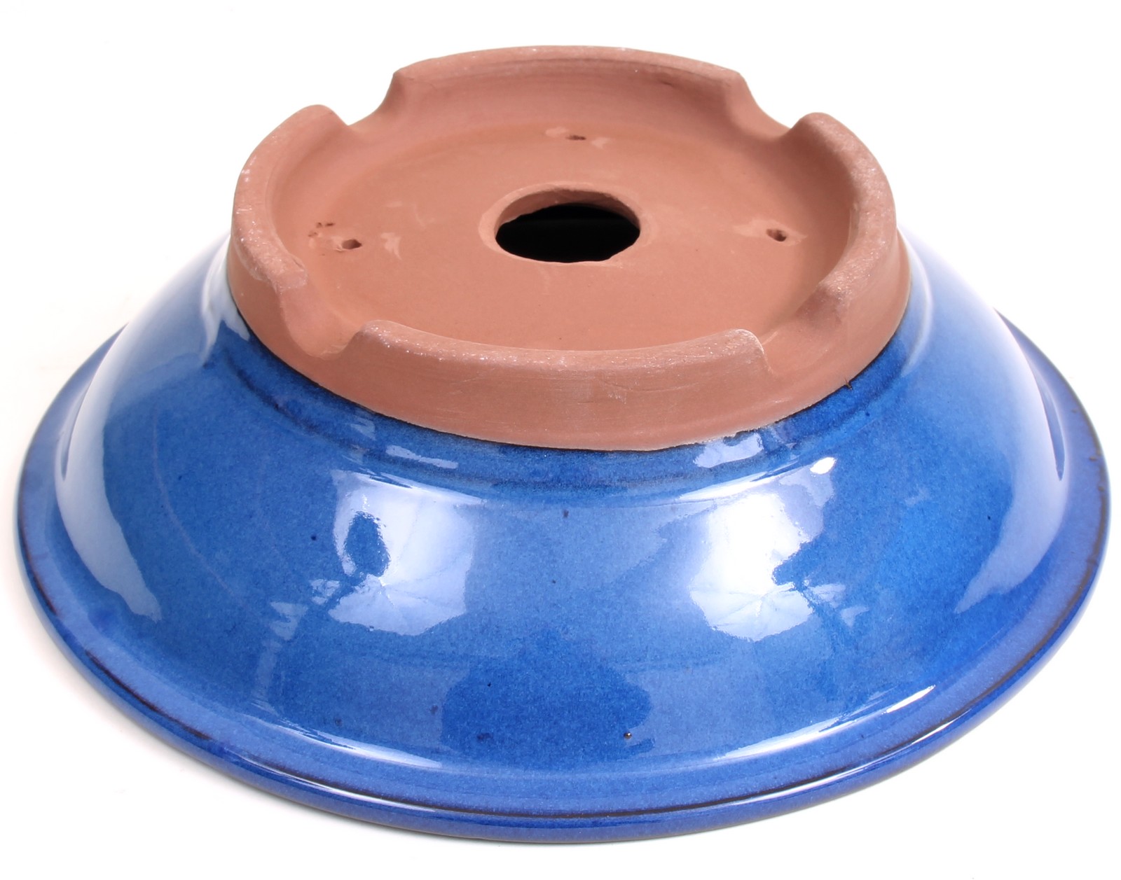 Runde Bonsaischale aus Japan, blau glasiert, ca. 27,5 Ø x 8 cm
