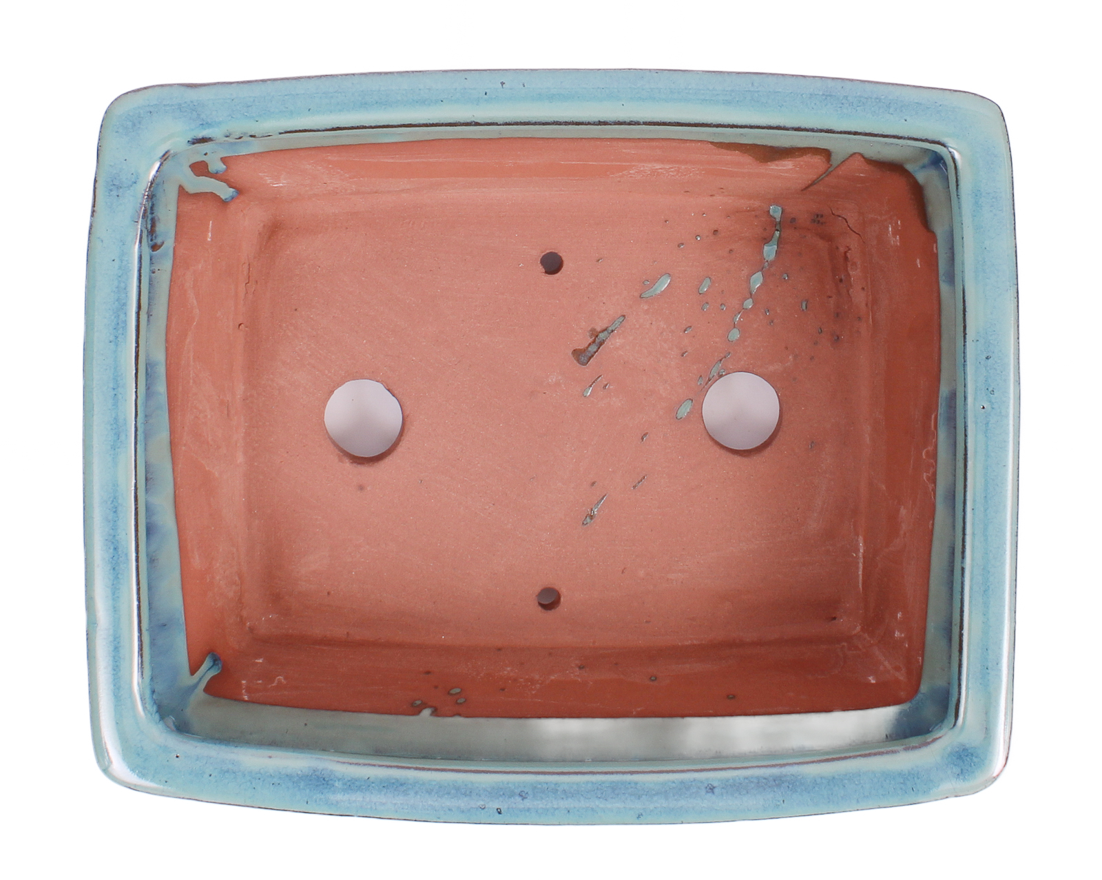 Eckige Bonsai-Schale mit Untersetzer grün glasiert