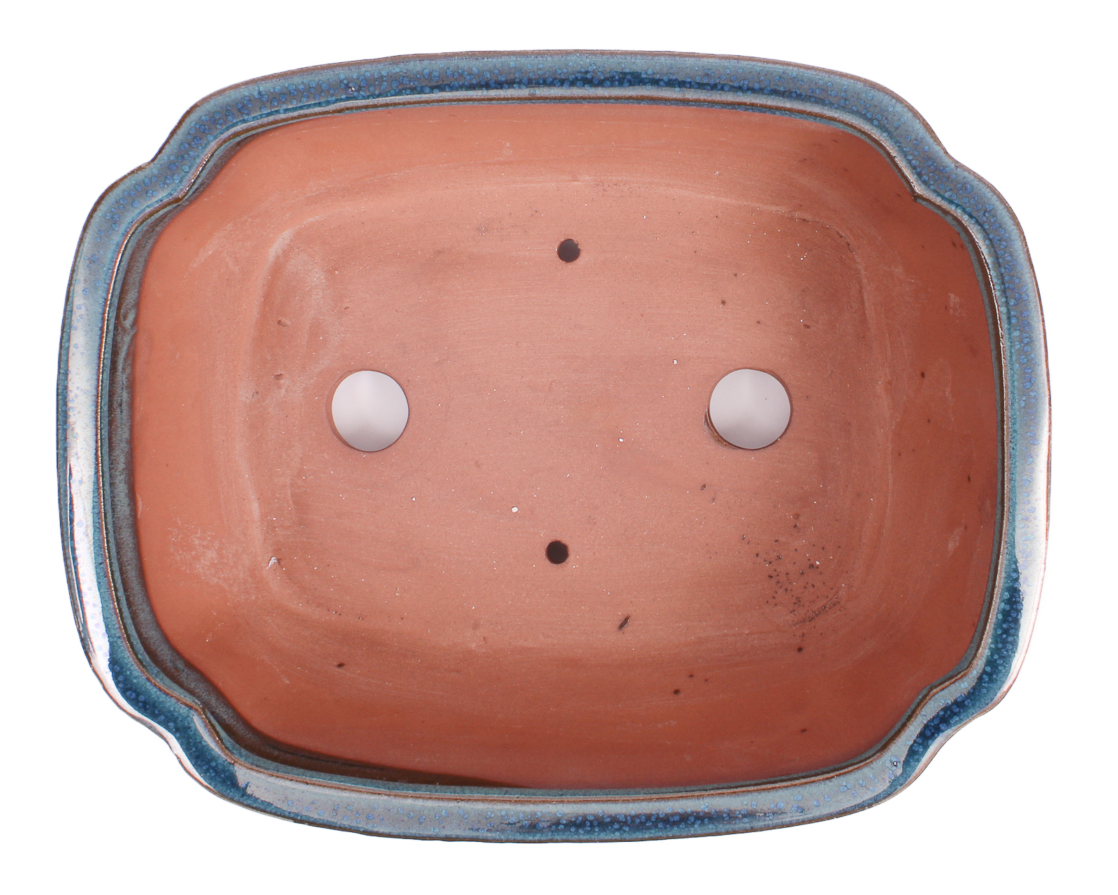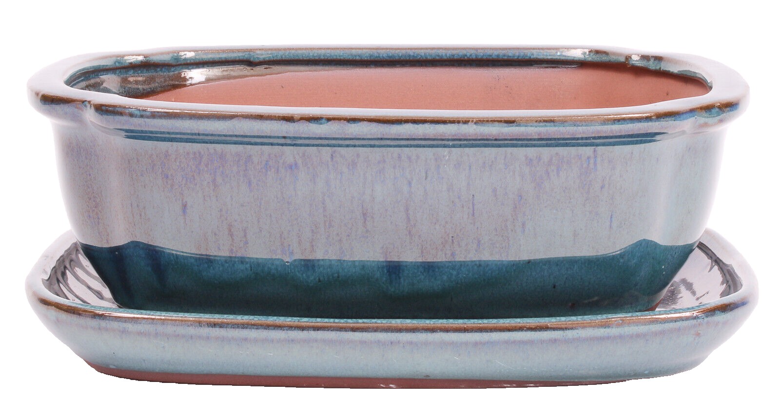 Eckige Bonsai-Schale mit Untersetzer blaugrün glasiert