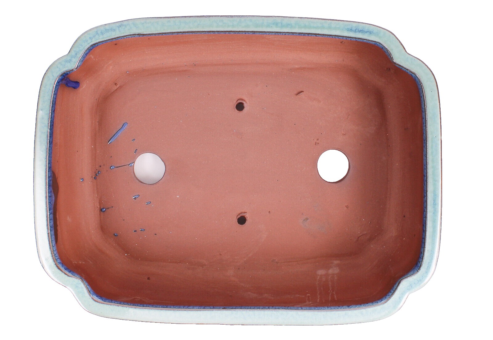 Eckige Bonsaischale - grün / blau verlaufend glasiert - mit Untersetzer
