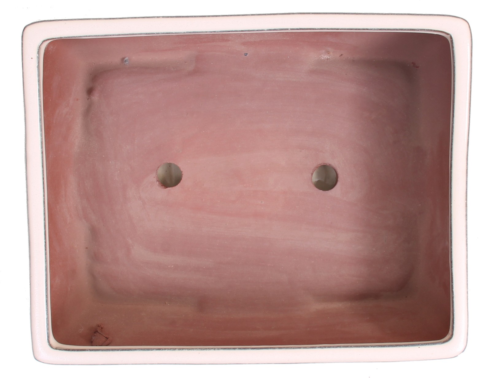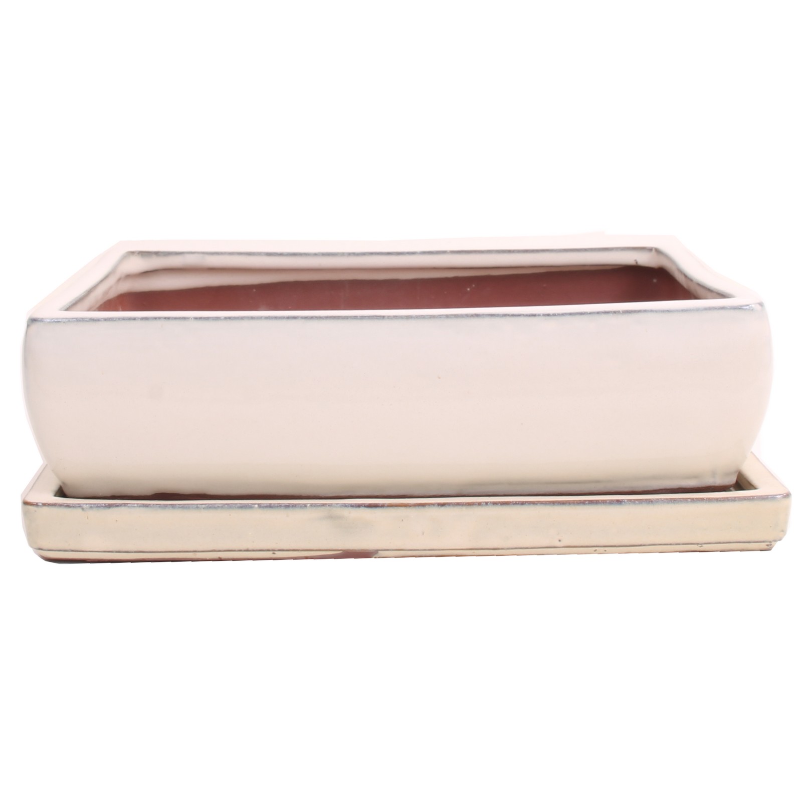 Eckige Bonsaischale, 27 x 21,5 x 8,5 cm , cremefarben glasiert, mit Untersetzer