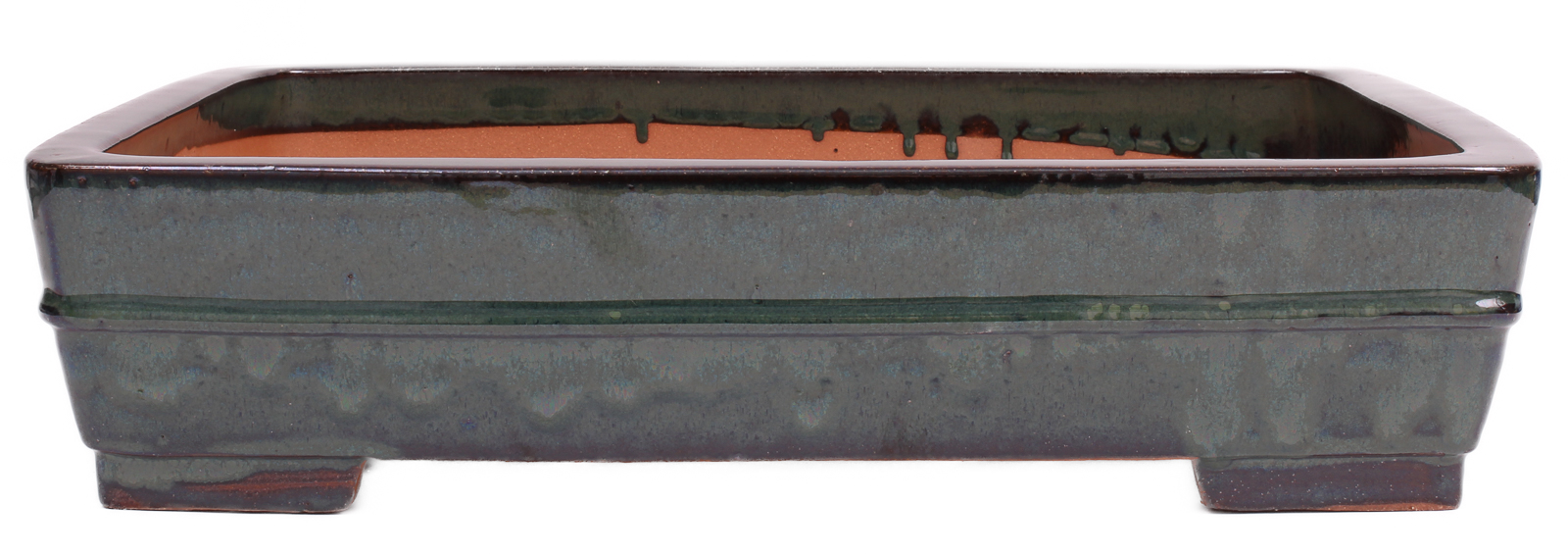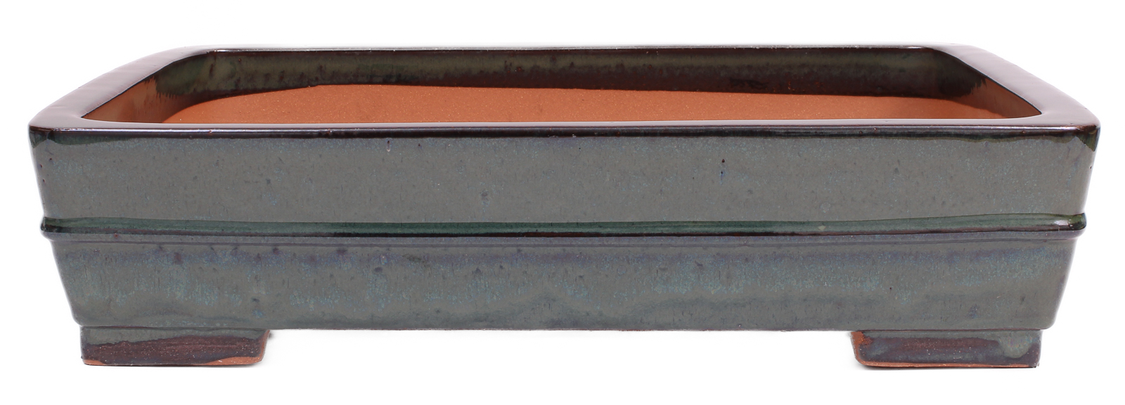 Eckige Bonsaischale moosgrün glasiert - frostfest