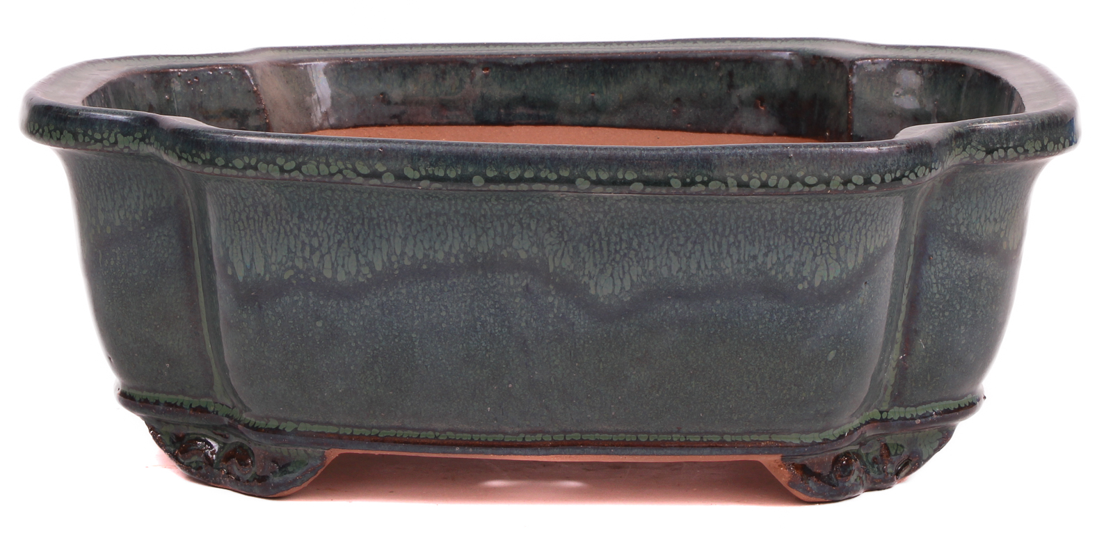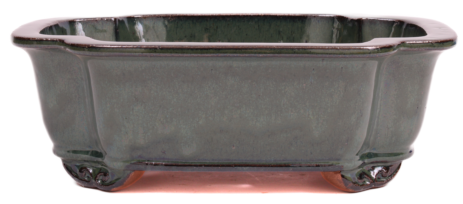 Eckige Bonsaischale moosgrün glasiert