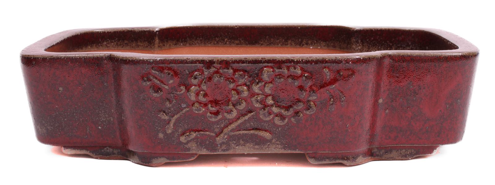 Ovale Bonsaischale - bordeauxfarben glasiert