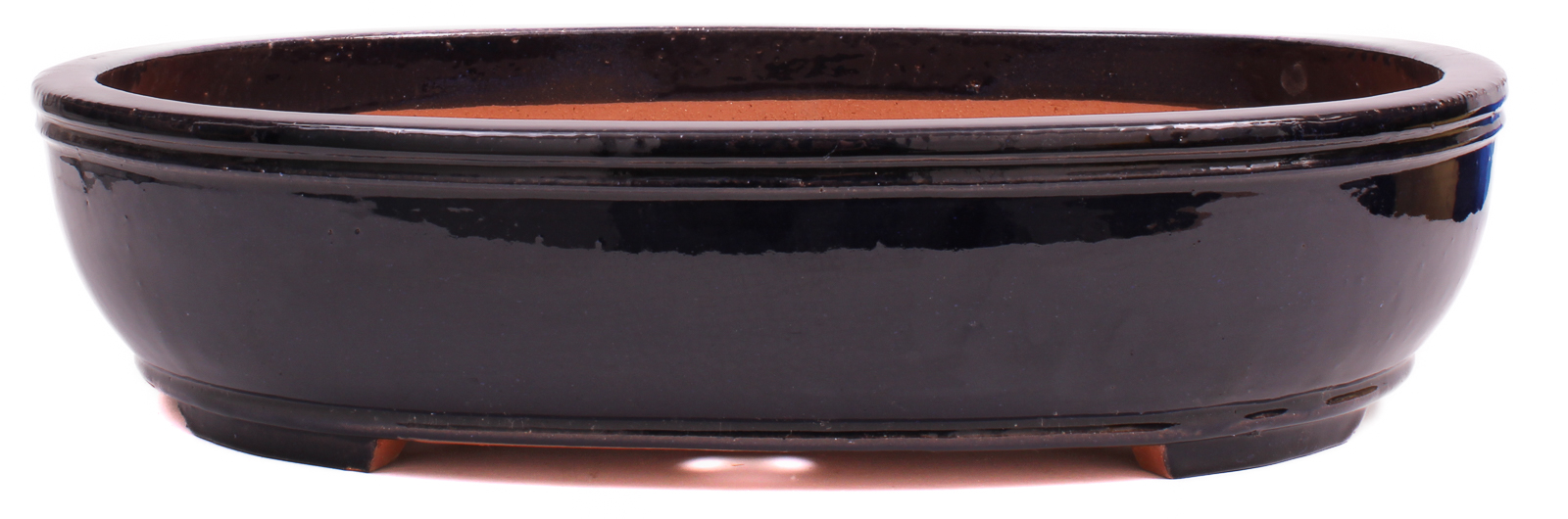 Ovale Bonsaischale dunkelblau, fast schwarz glasiert