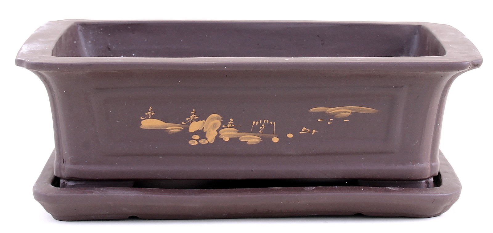Bonsai-Schale mit Untersetzer 35 x 25 x 11 cm, mit Motiv , braun, eckig, unglasiert