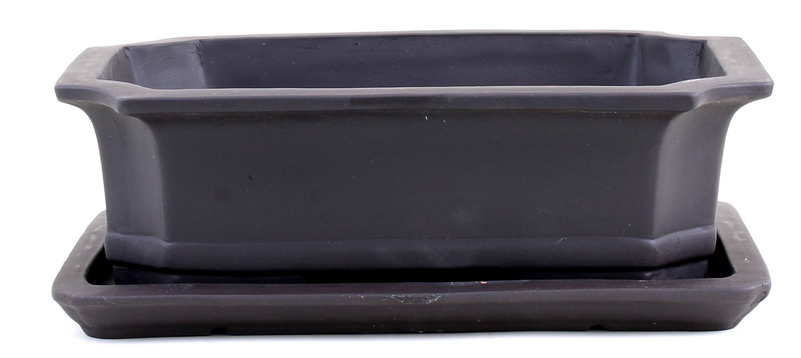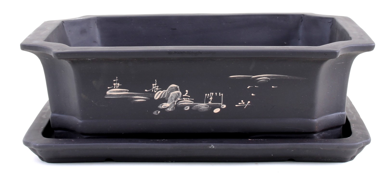 Bonsai-Schale mit Untersetzer 35 x 25 x 10,5 cm, mit Motiv , dunkelbraun, eckig, unglasiert