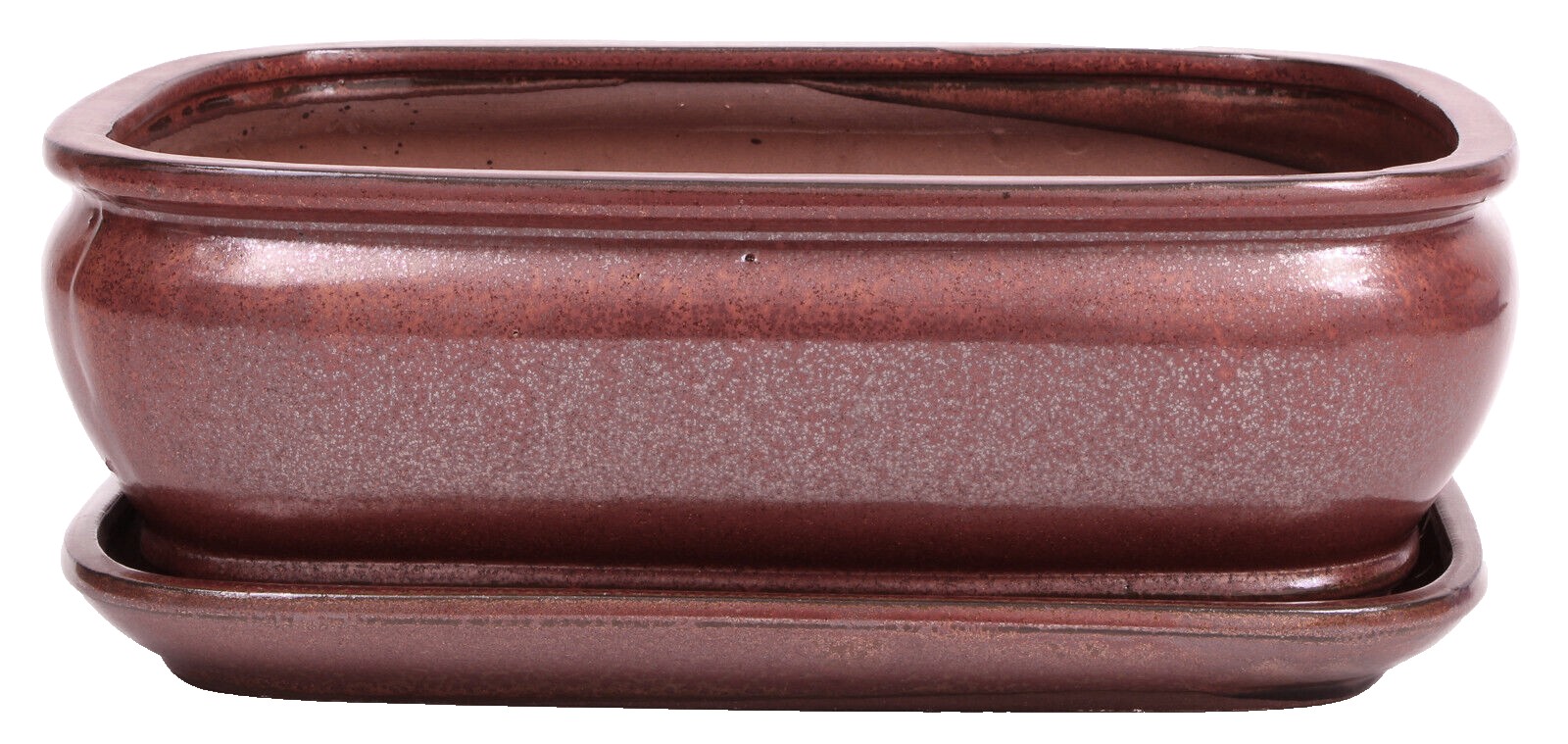 Ovale Bonsaischale, kupferfarben glasiert, mit Untersetzer