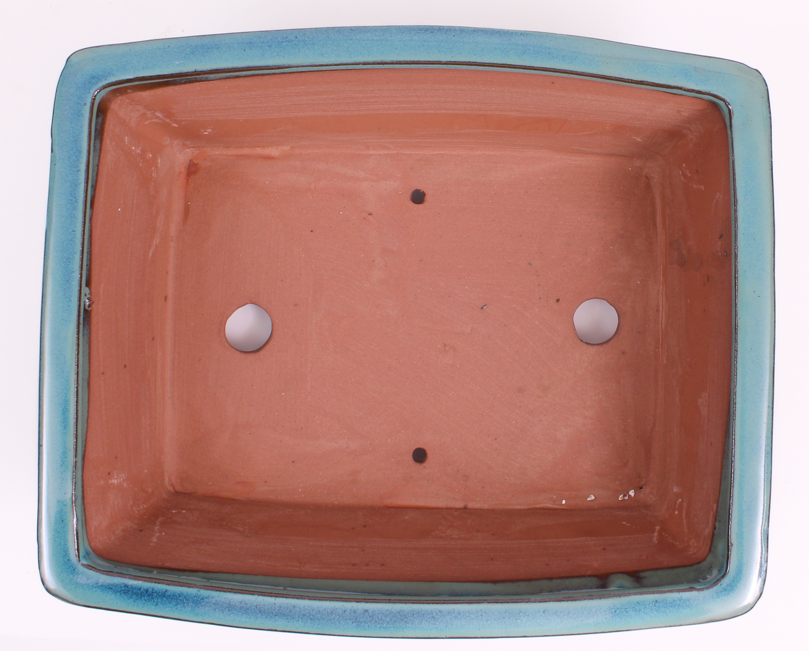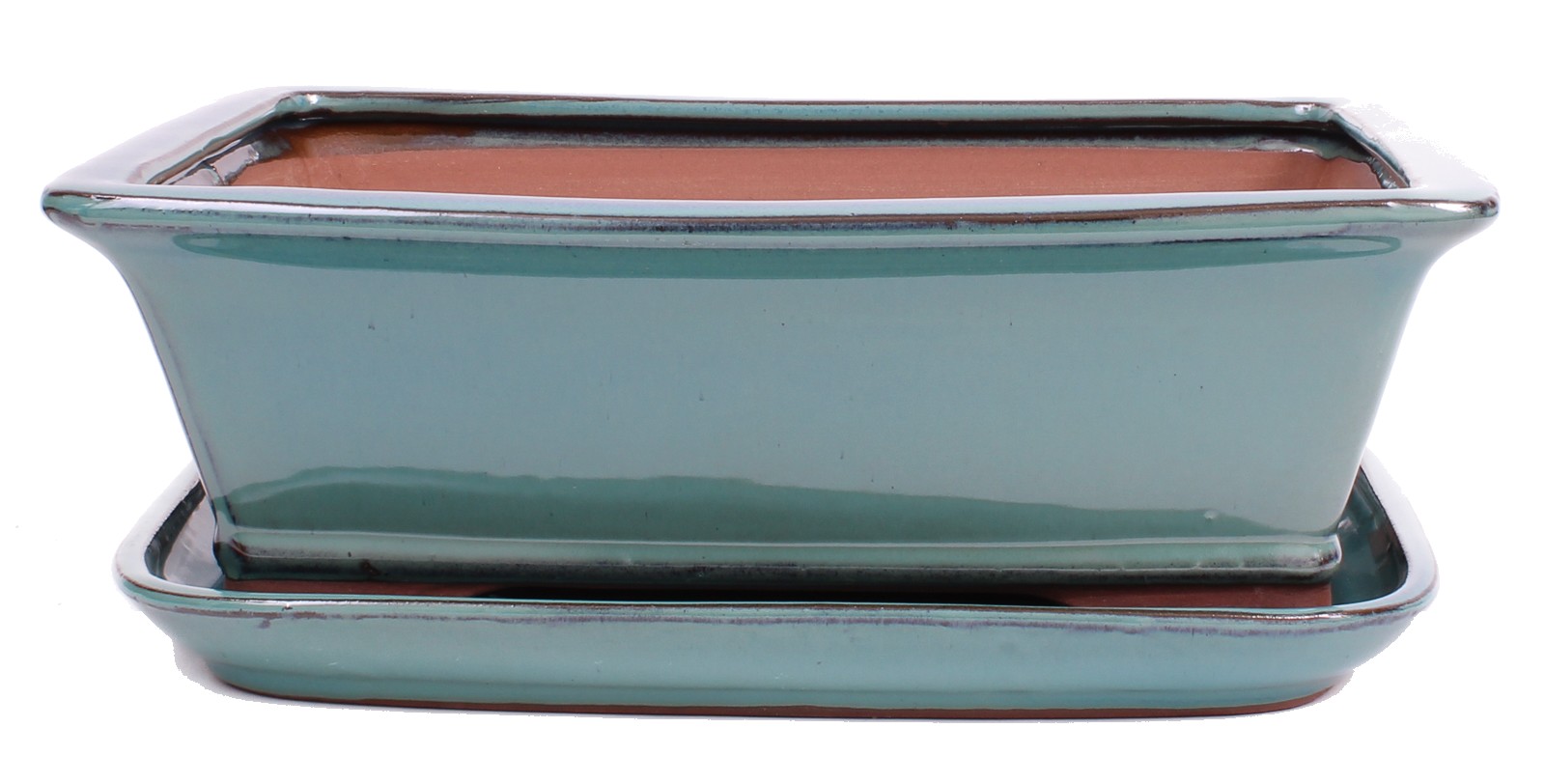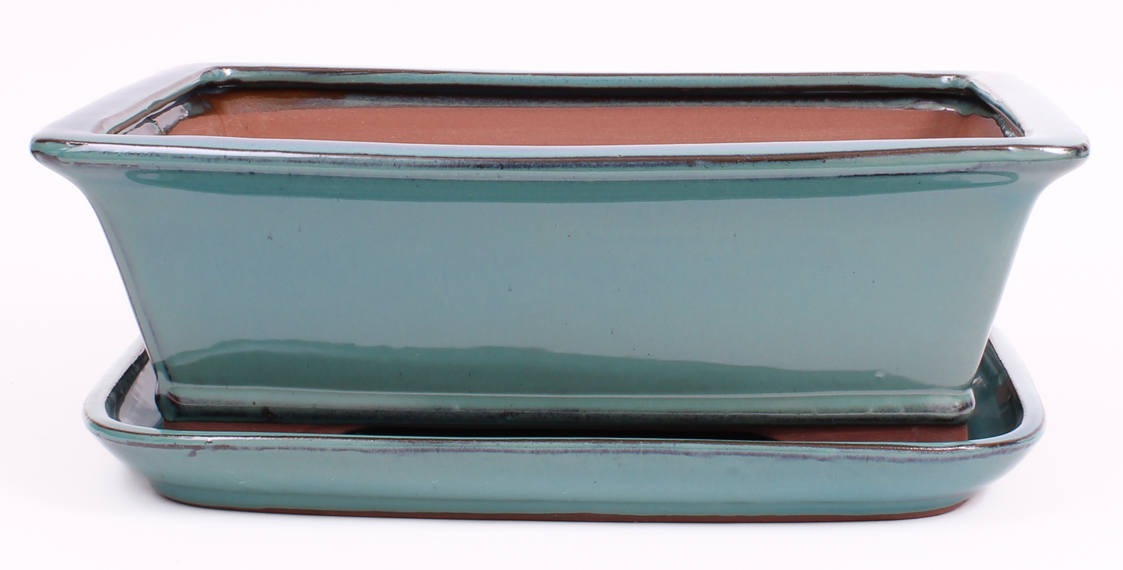 Eckige Bonsaischale,grün glasiert, mit Untersetzer