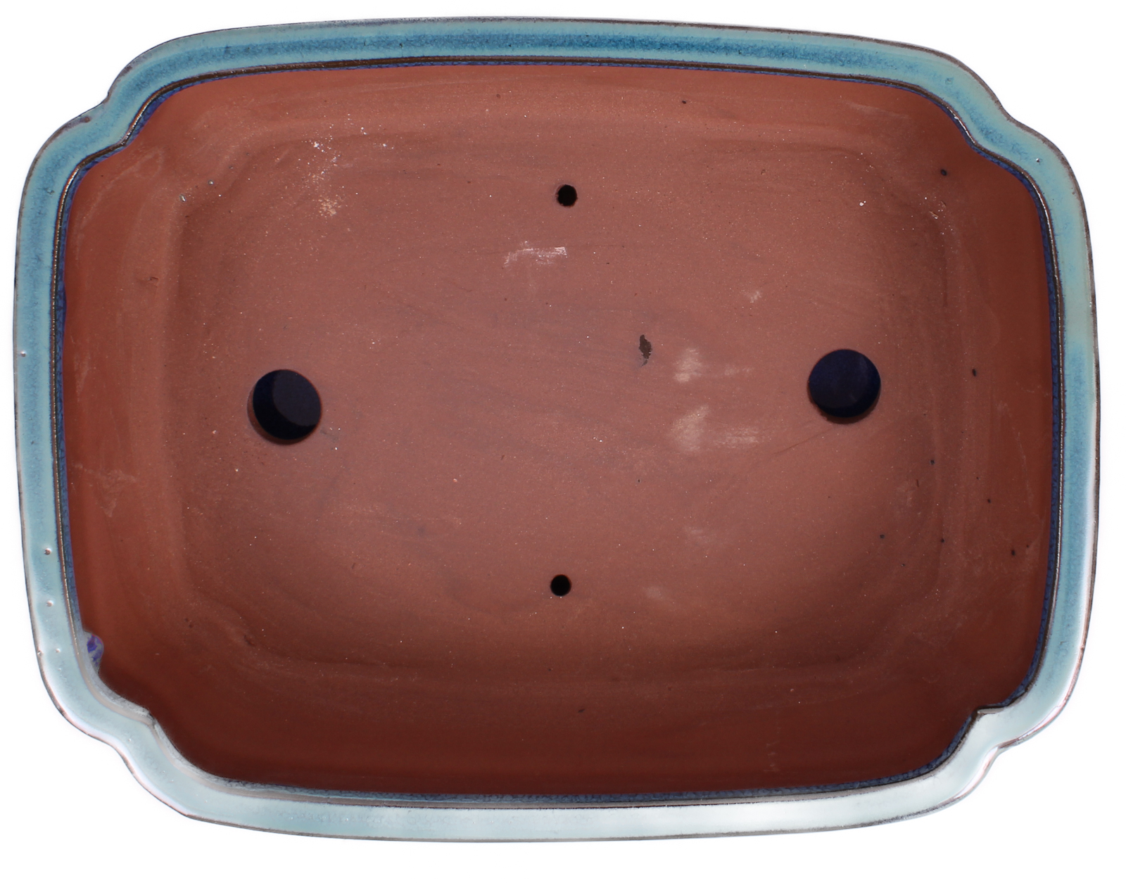 Eckige Bonsaischale - grün / blau verlaufend glasiert - mit Untersetzer