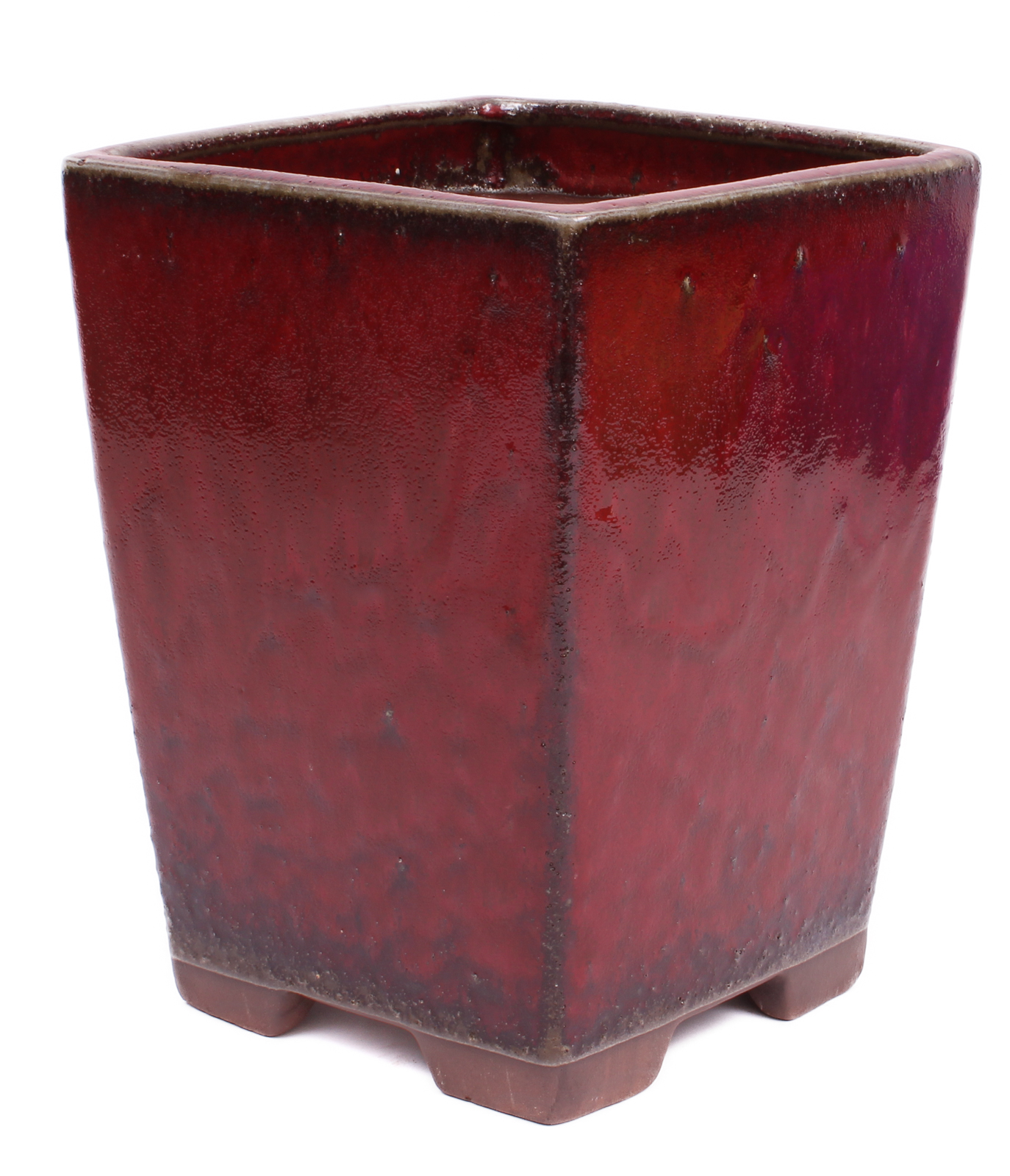 Quadratische Bonsai Kaskadenschale bordeauxfarben glasiert