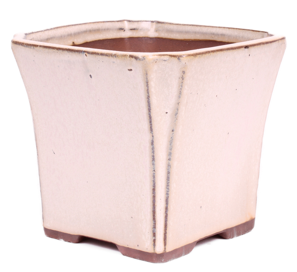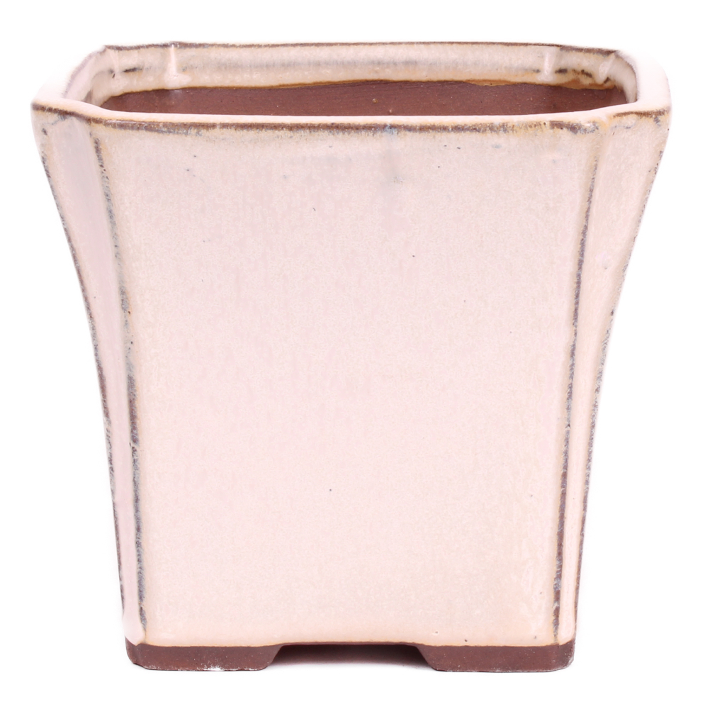 Quadratische Bonsai Kaskadenschale cremefarben glasiert
