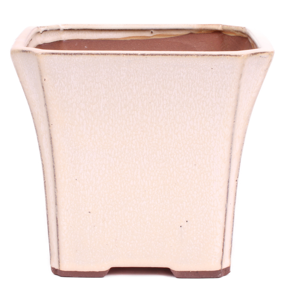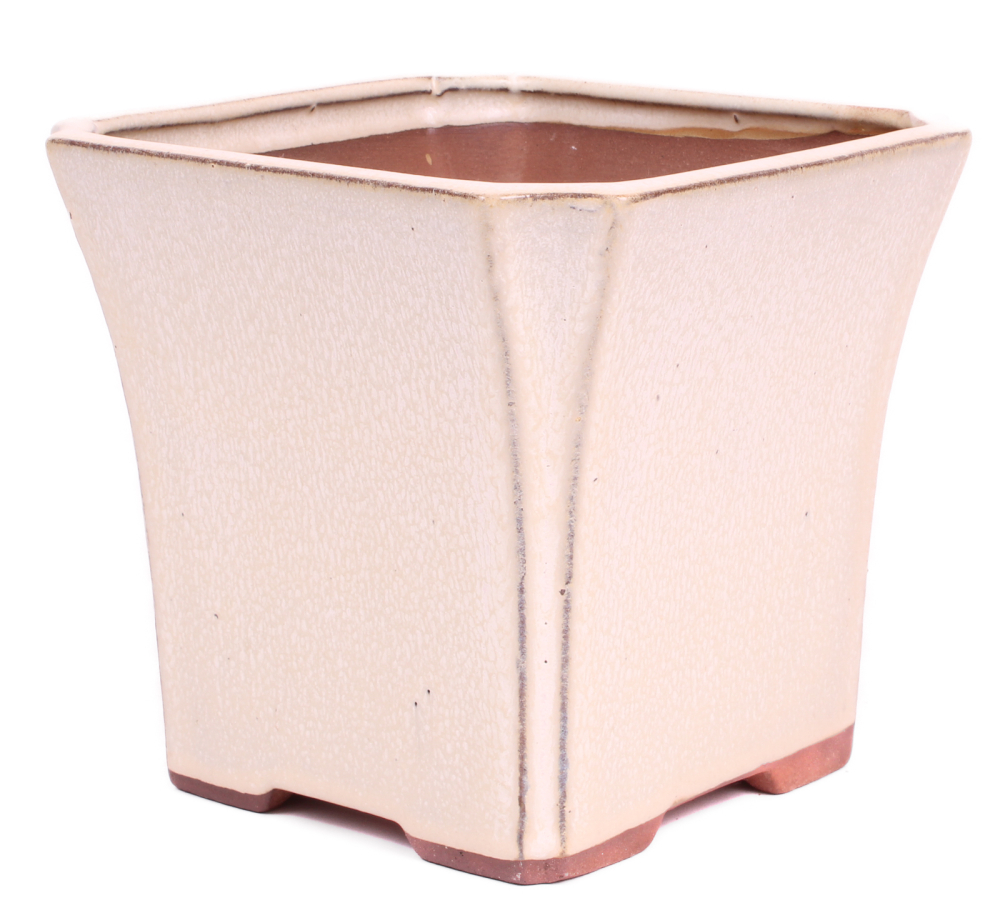 Quadratische Bonsai Kaskadenschale cremefarben glasiert