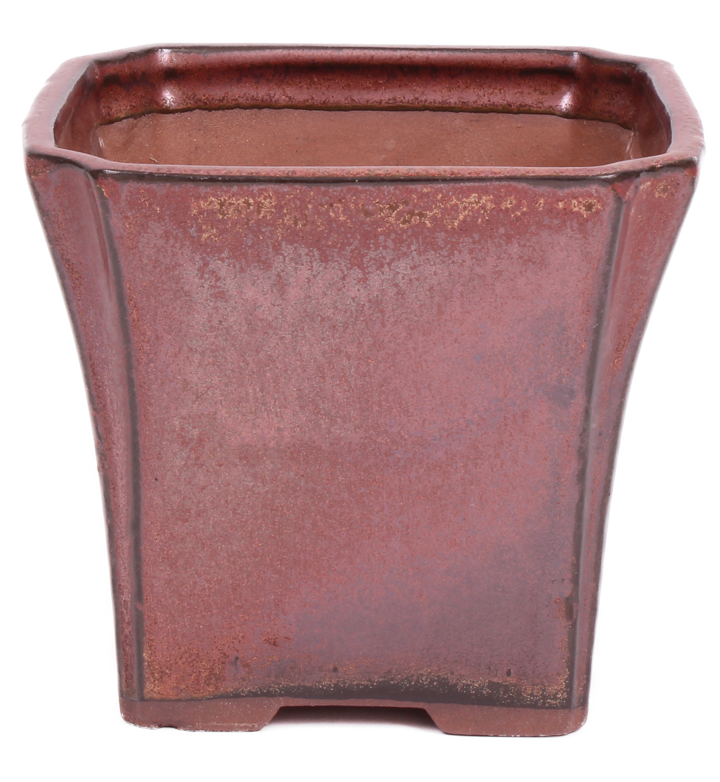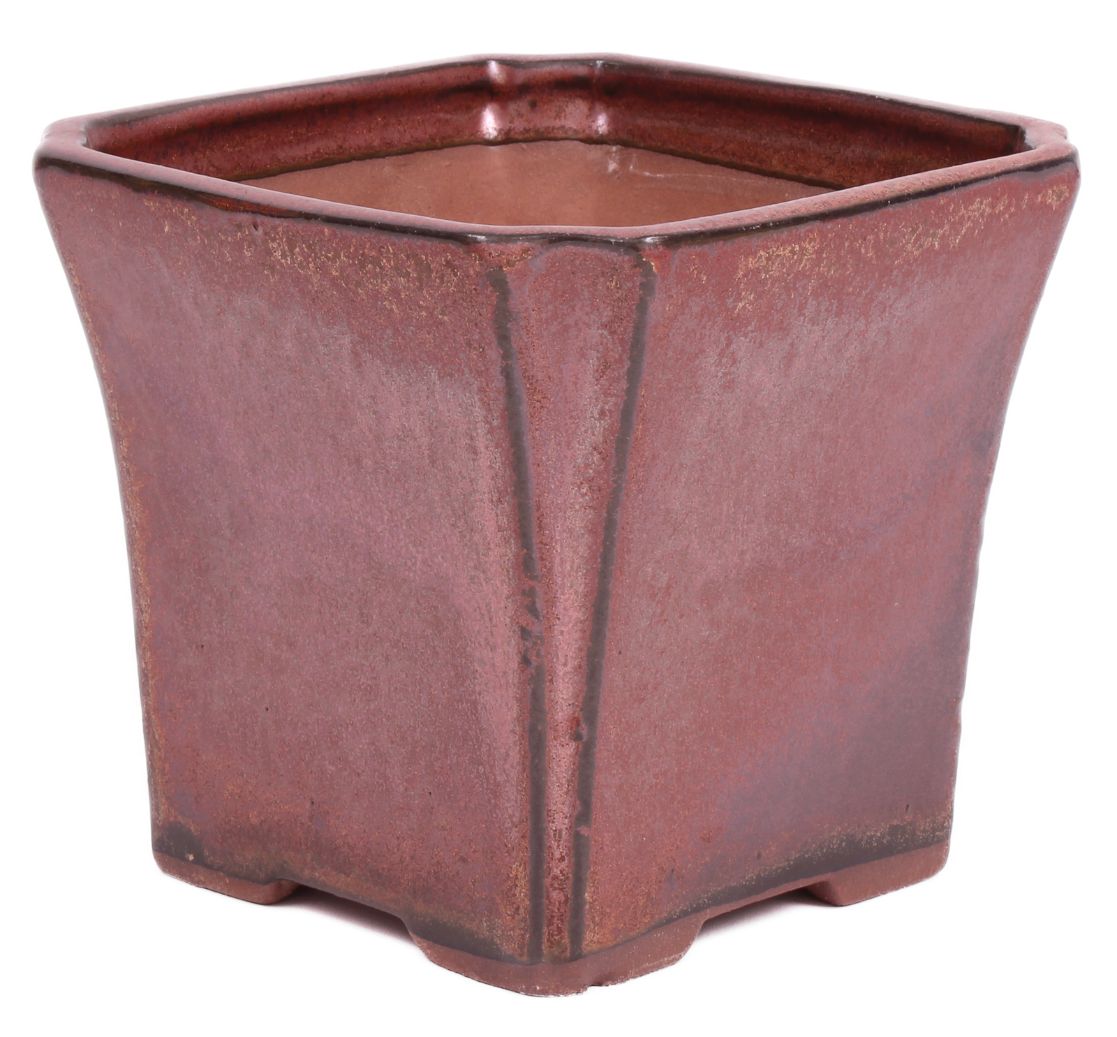 Quadratische Bonsai Kaskadenschale kupferfarben glasiert