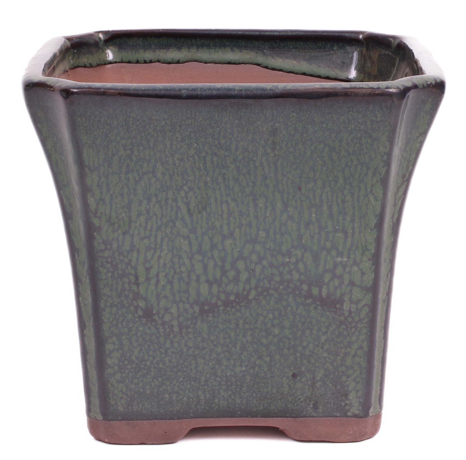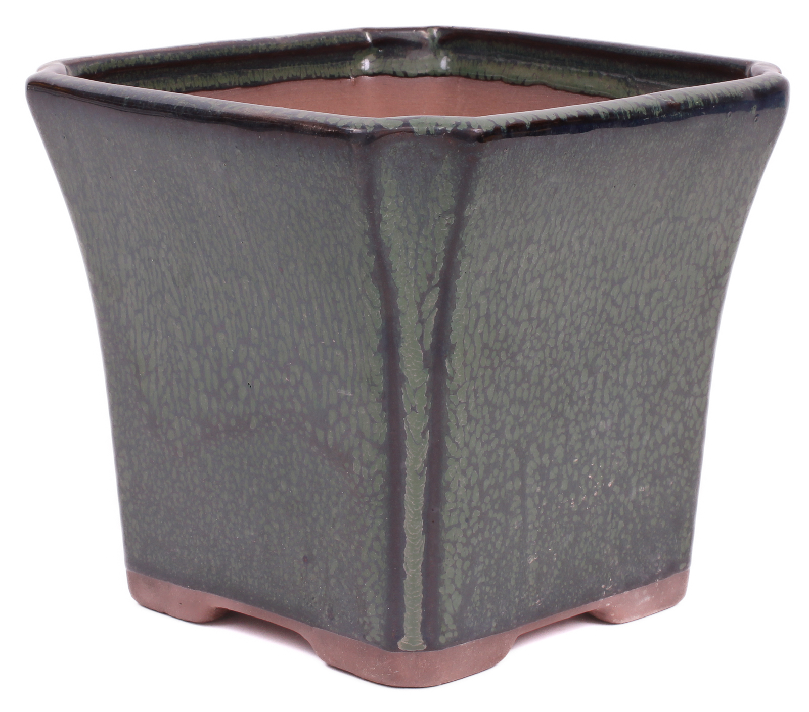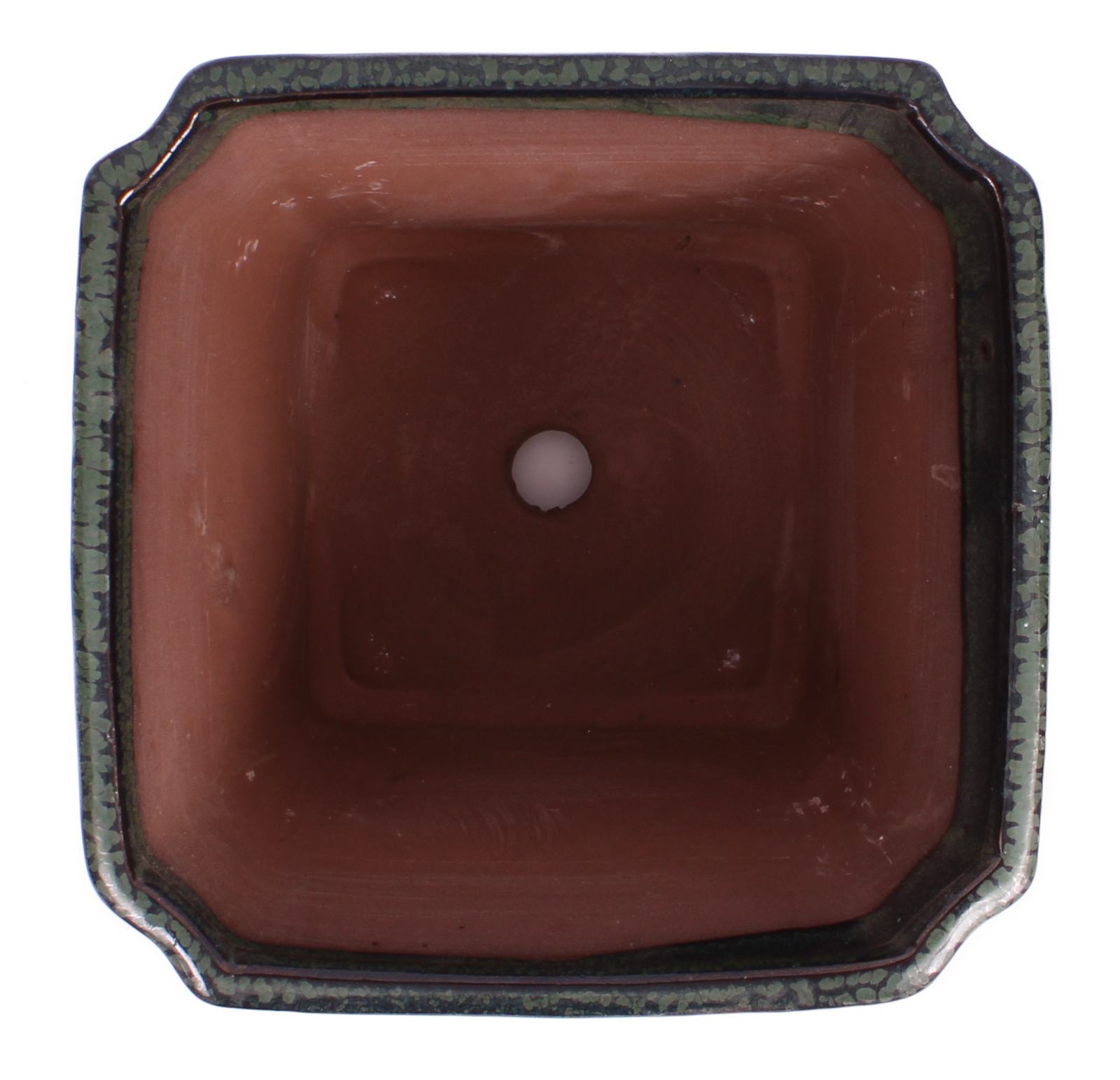 Quadratische Bonsai Kaskadenschale grün glasiert