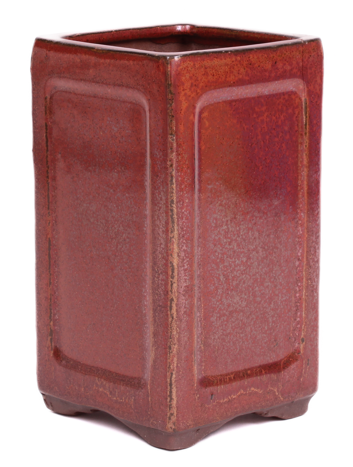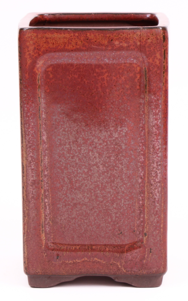 Quadratische Bonsai Kaskadenschale kupferfarben glasiert
