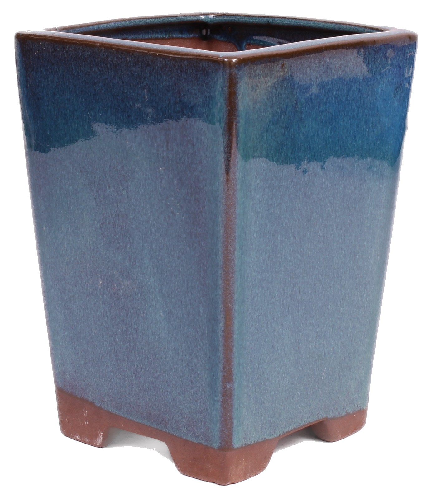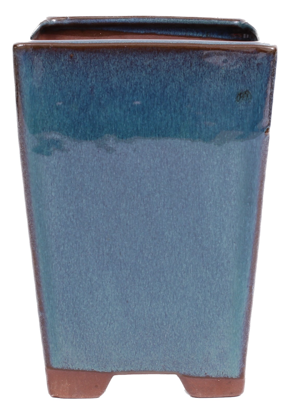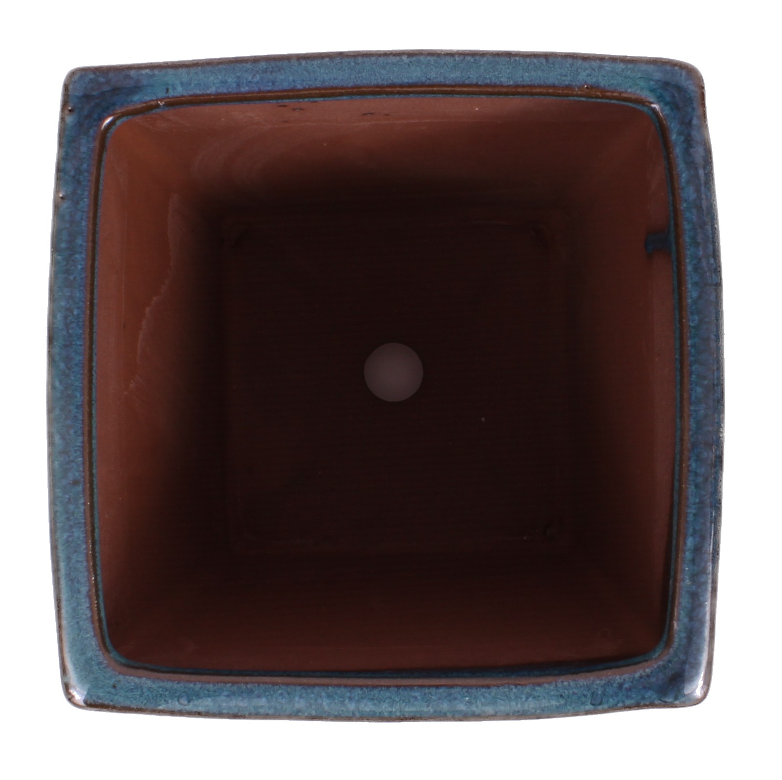 Quadratische Bonsai Kaskadenschale grünblau glasiert