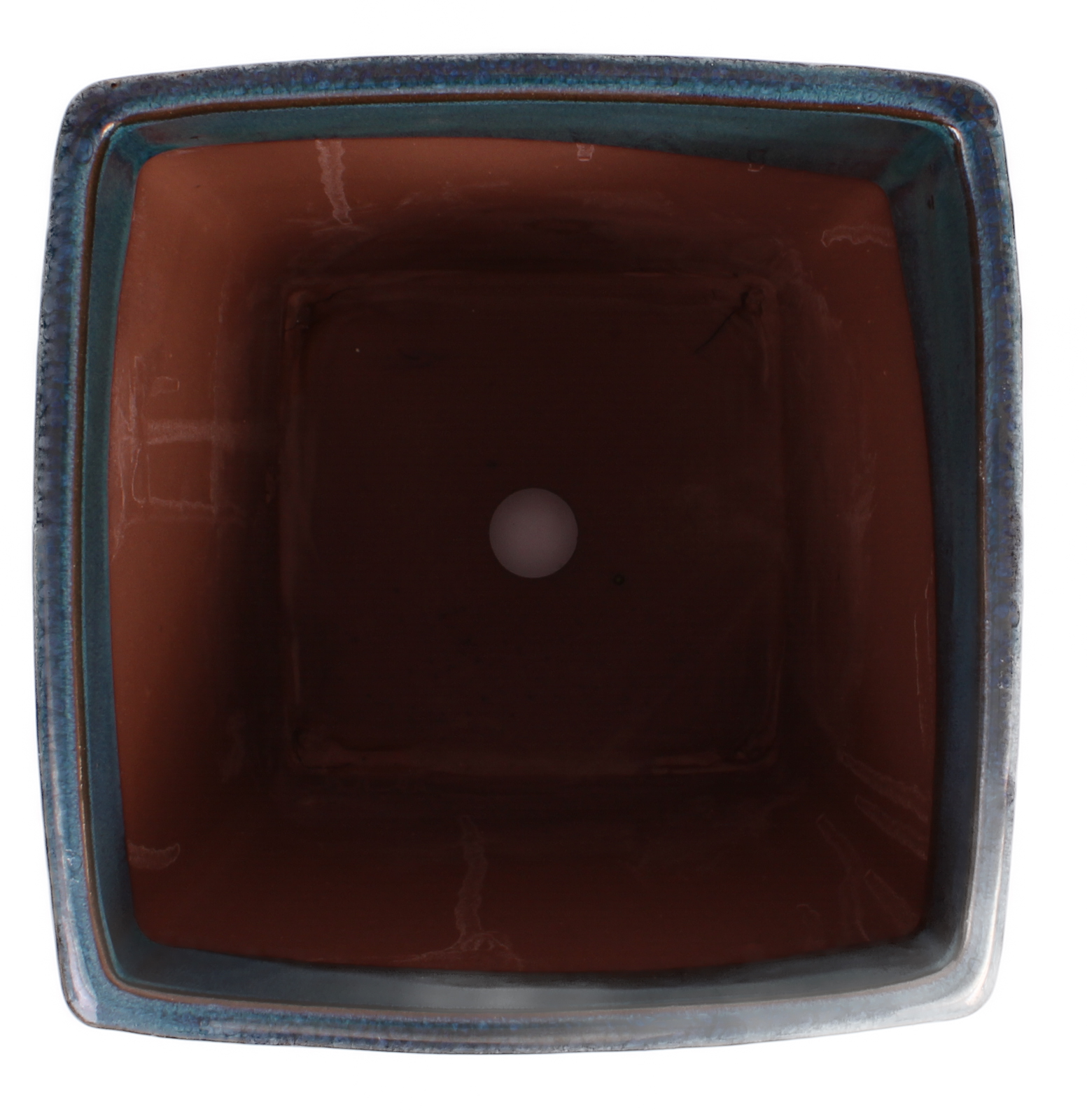 Quadratische Bonsai Kaskadenschale grünblau glasiert