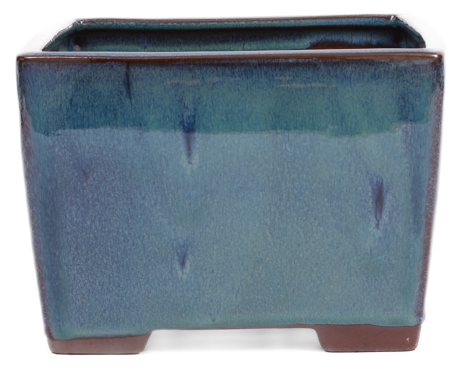 Quadratische Bonsai Kaskadenschale grünblau glasiert