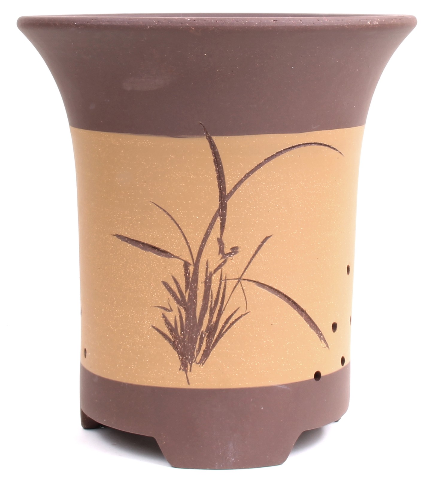 Bonsai - Kaskadenschale 25,5 x 24 Ø cm, beige-braun, mit Motiv, 50909