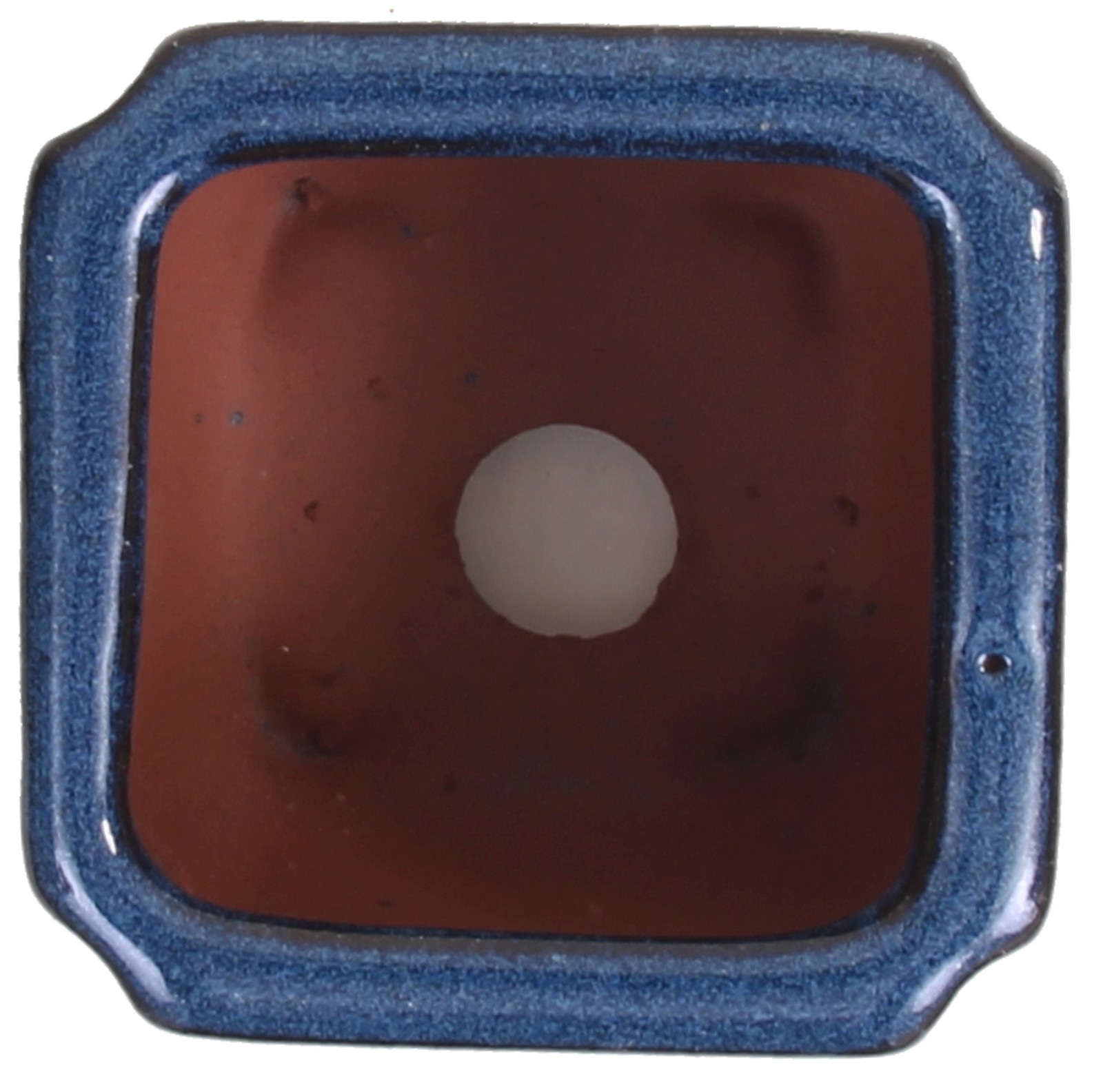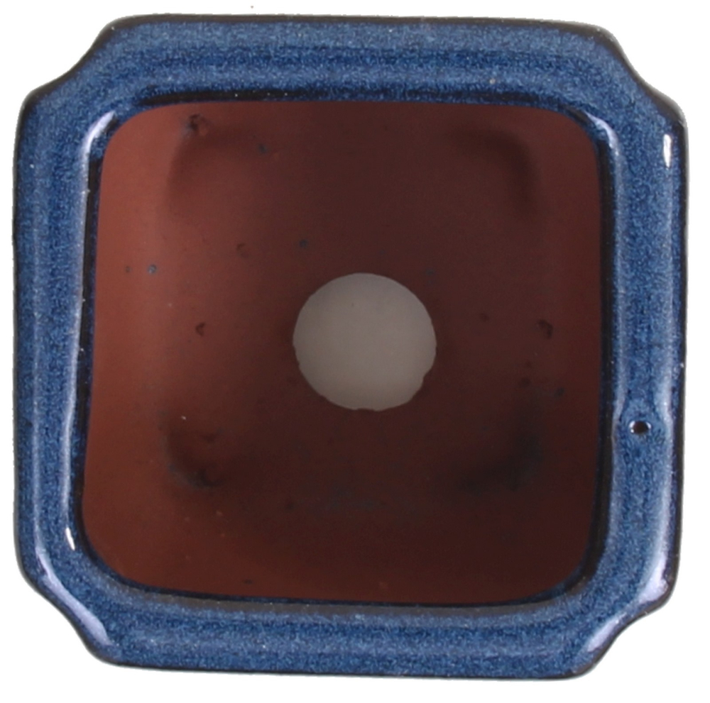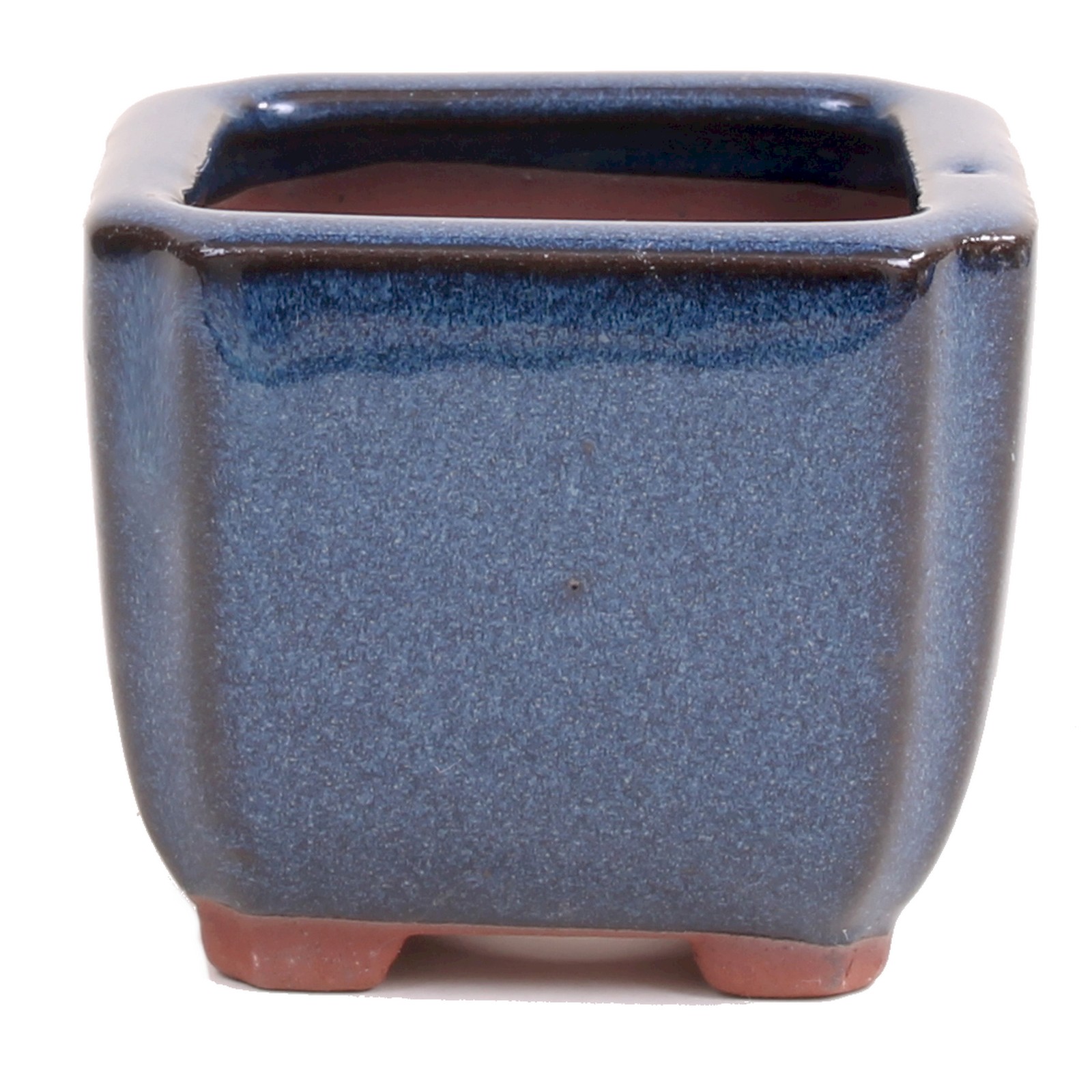 Quadratische Bonsai-Kaskadenschale, ca. 7,5 x 7,5 x 6,5 cm, blau glasiert