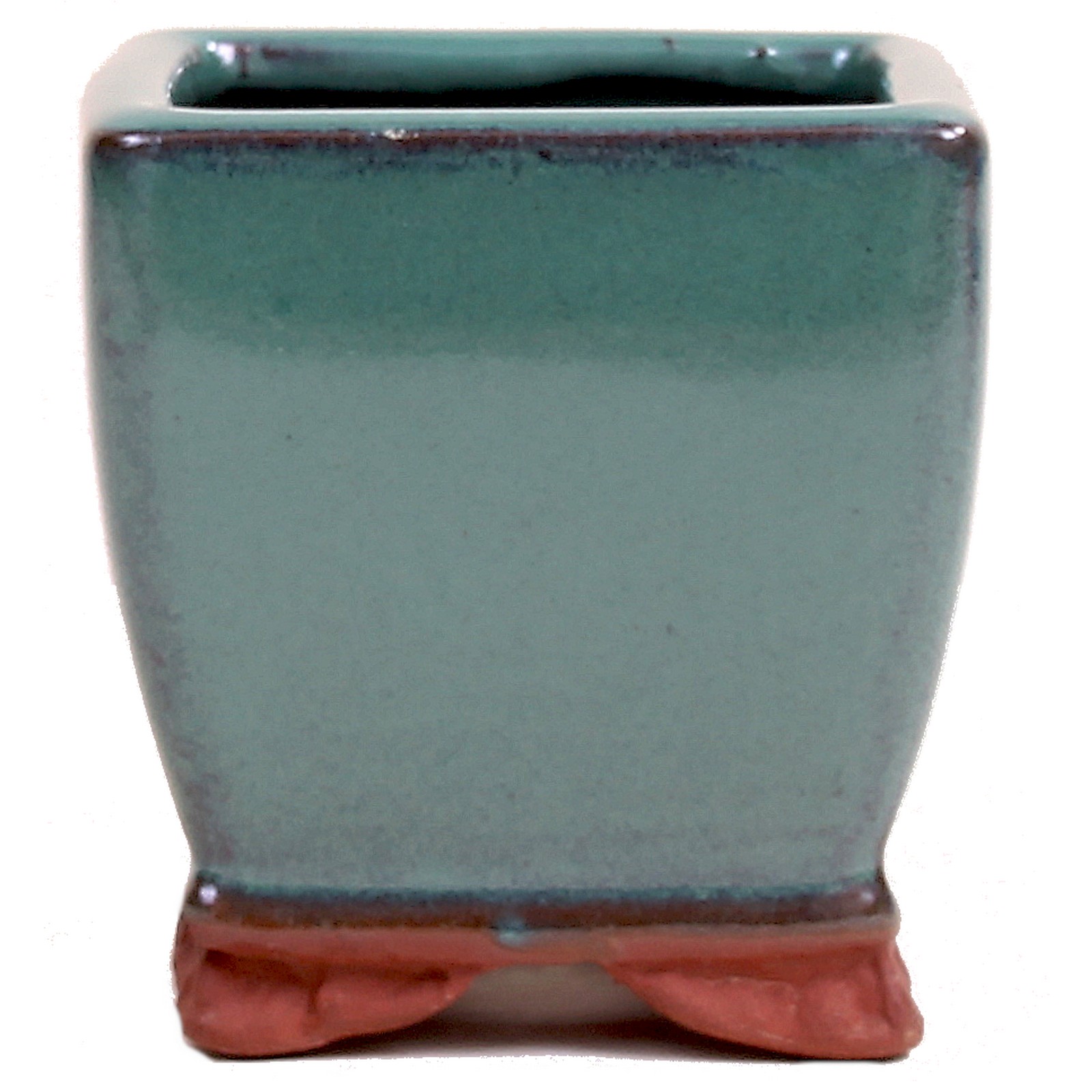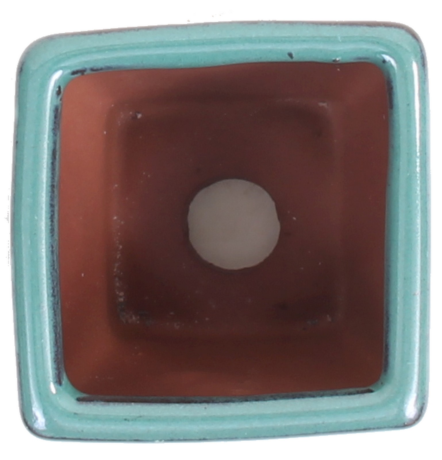 Quadratische Bonsai-Kaskadenschale, ca. 7 x 7 x 7 cm, grün glasiert