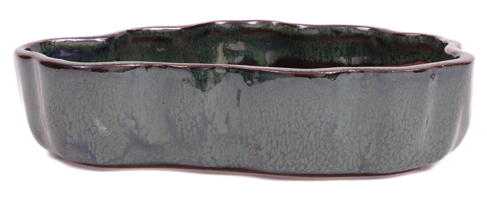 Ovale Bonsaischale / Wasserschale grün glasiert
