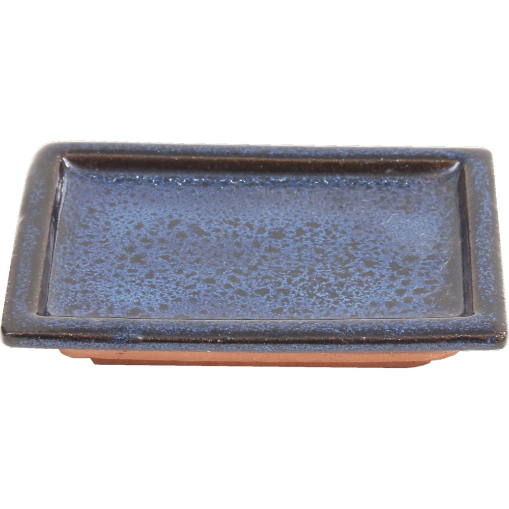 Eckiger Bonsai-Untersetzer, blau glasiert