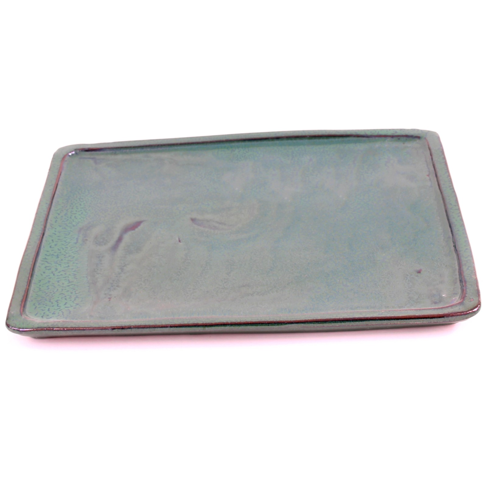Eckiger Bonsai-Untersetzer, grün glasiert