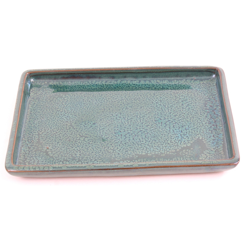 Eckiger Bonsai-Untersetzer, grün glasiert