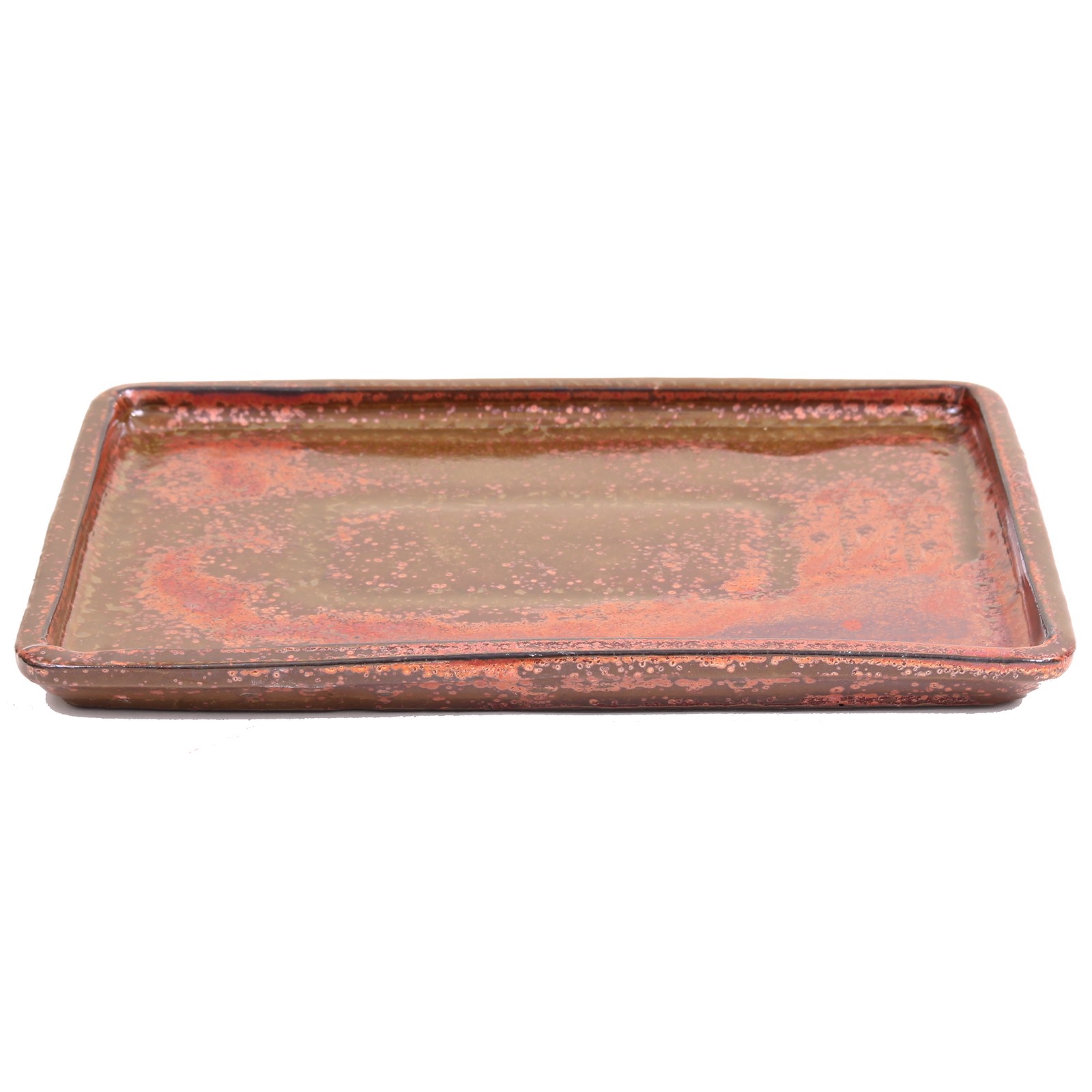 Eckiger Bonsai-Untersetzer, kupferfarben glasiert