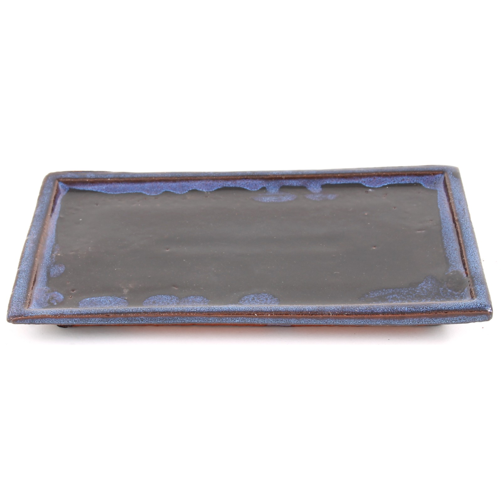 Eckiger Bonsai-Untersetzer, blau glasiert