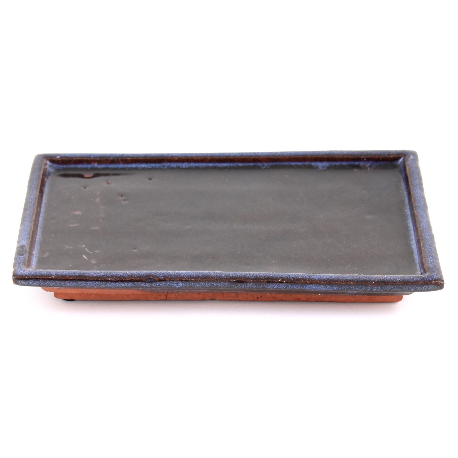 Eckiger Bonsai-Untersetzer, blau glasiert