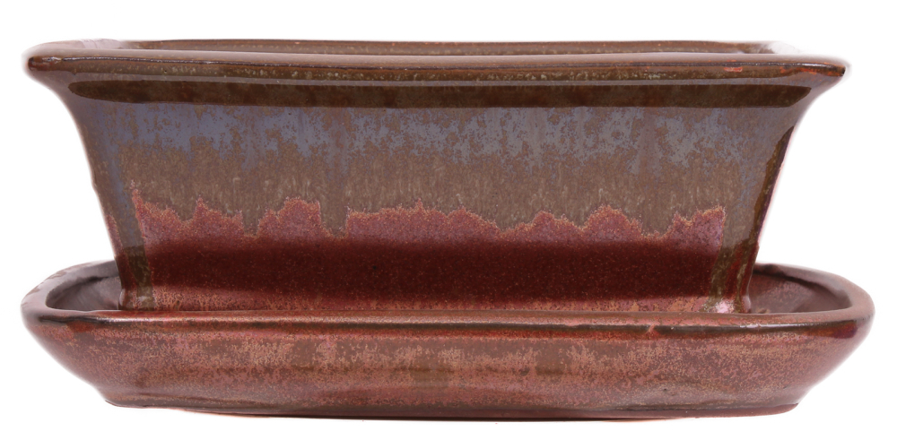 Eckiger Bonsai-Untersetzer, cremefarben glasiert